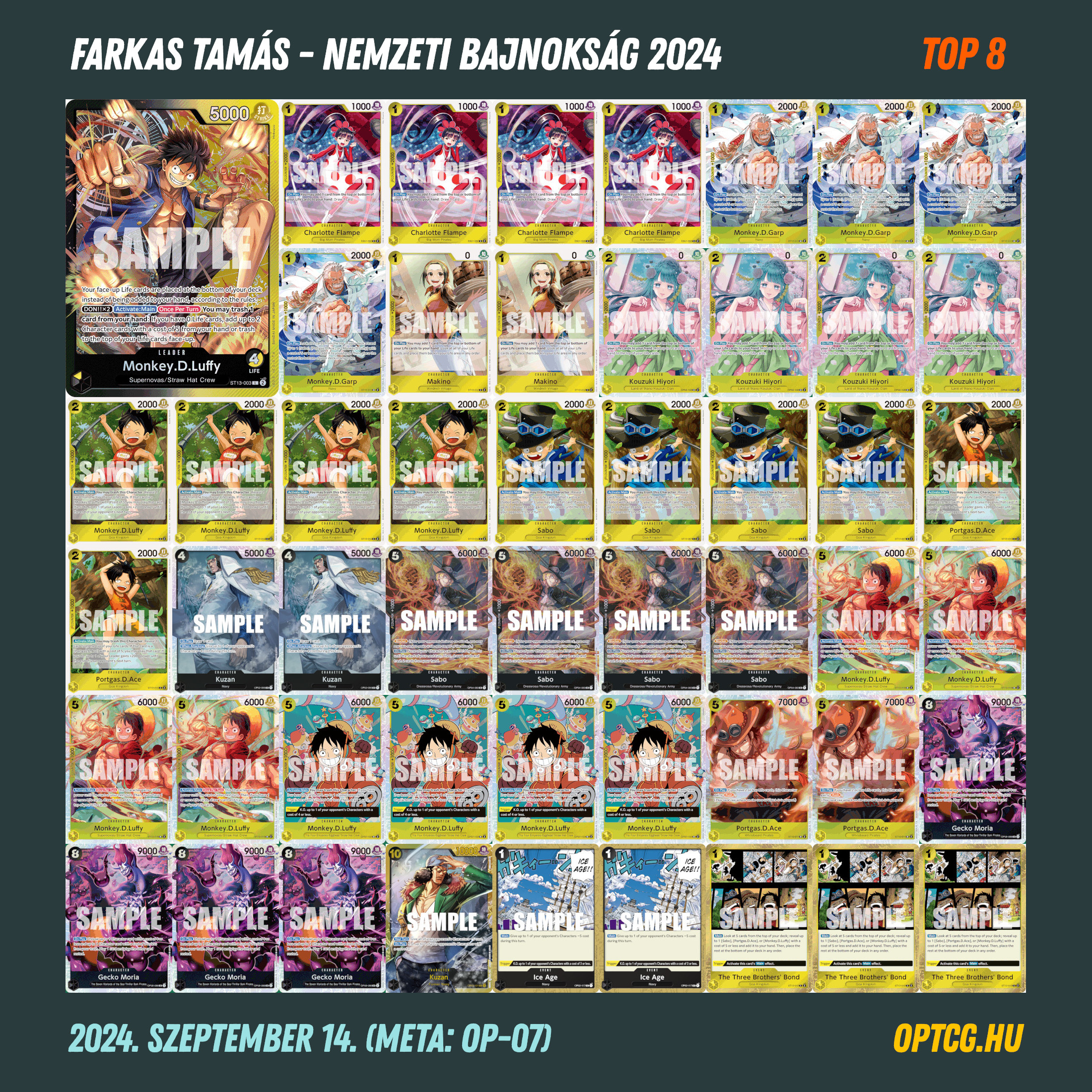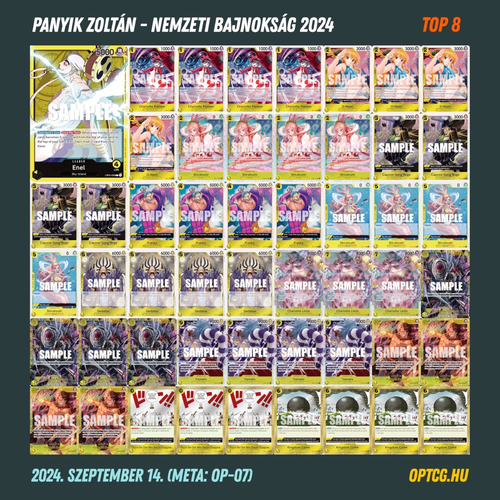 Gratulálunk mindenkinek, és köszönjük a szervezést a Metagame csapatának! A Top 8 paklilistát lent böngészhetitek – most pedig jöhet végre az OP-08 meta…