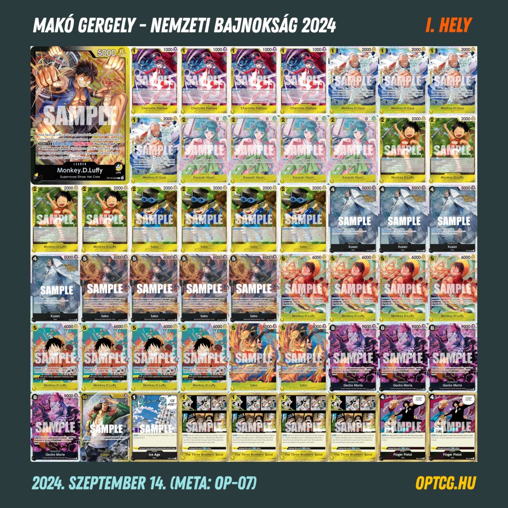 Nagyon izgalmas felkészülés előzte meg a szeptember 14-én tartott második One Piece Card Game Nemzeti Bajnokságot, hiszen nem elég, hogy az alig két hete életbe lépő balansz változtatások felkavarták némileg a meta állóvizét, de az eredmények is jelentős változatosságot mutattak, így nehéz volt előzetesen megjósolni, hogy milyen deck lesz idén a befutó.