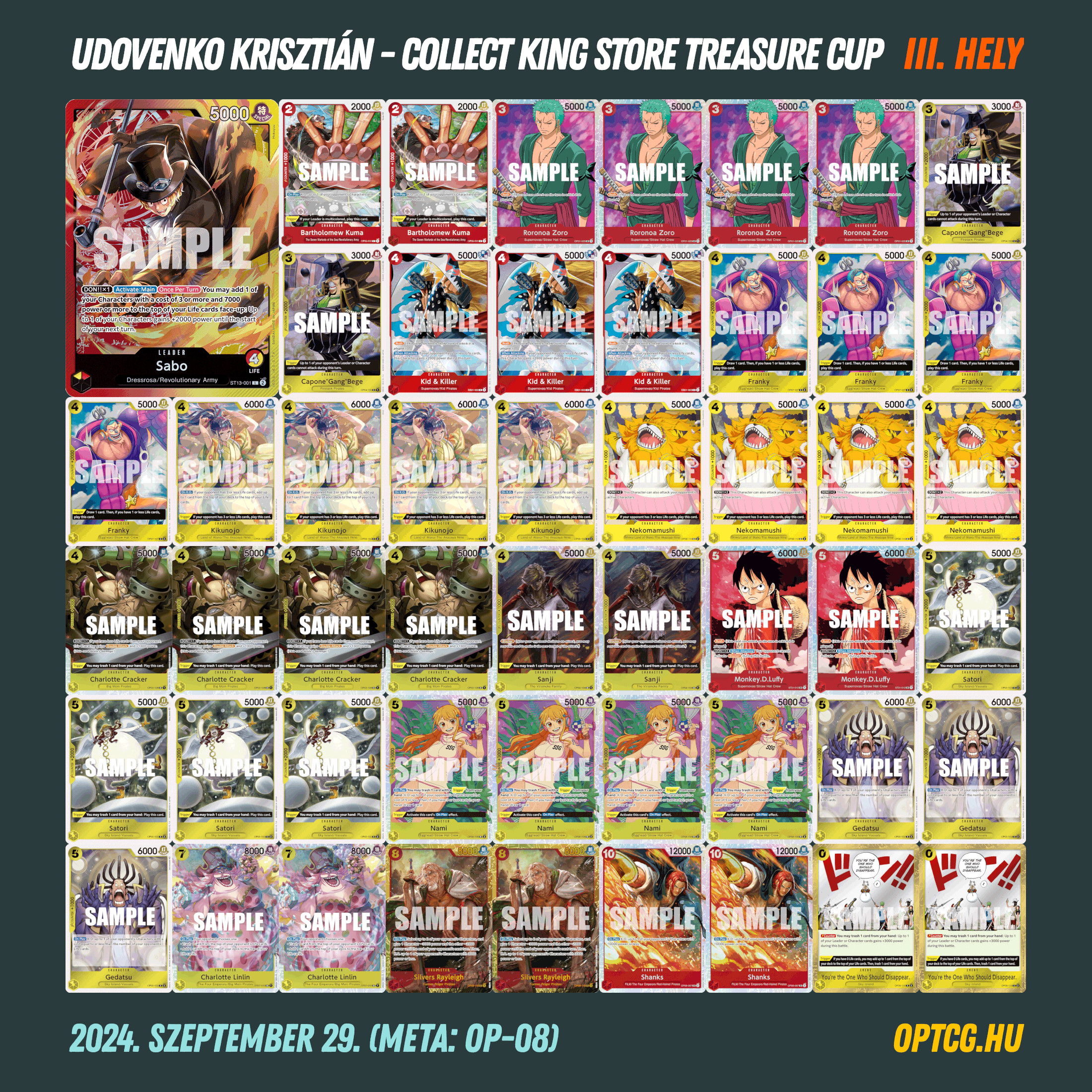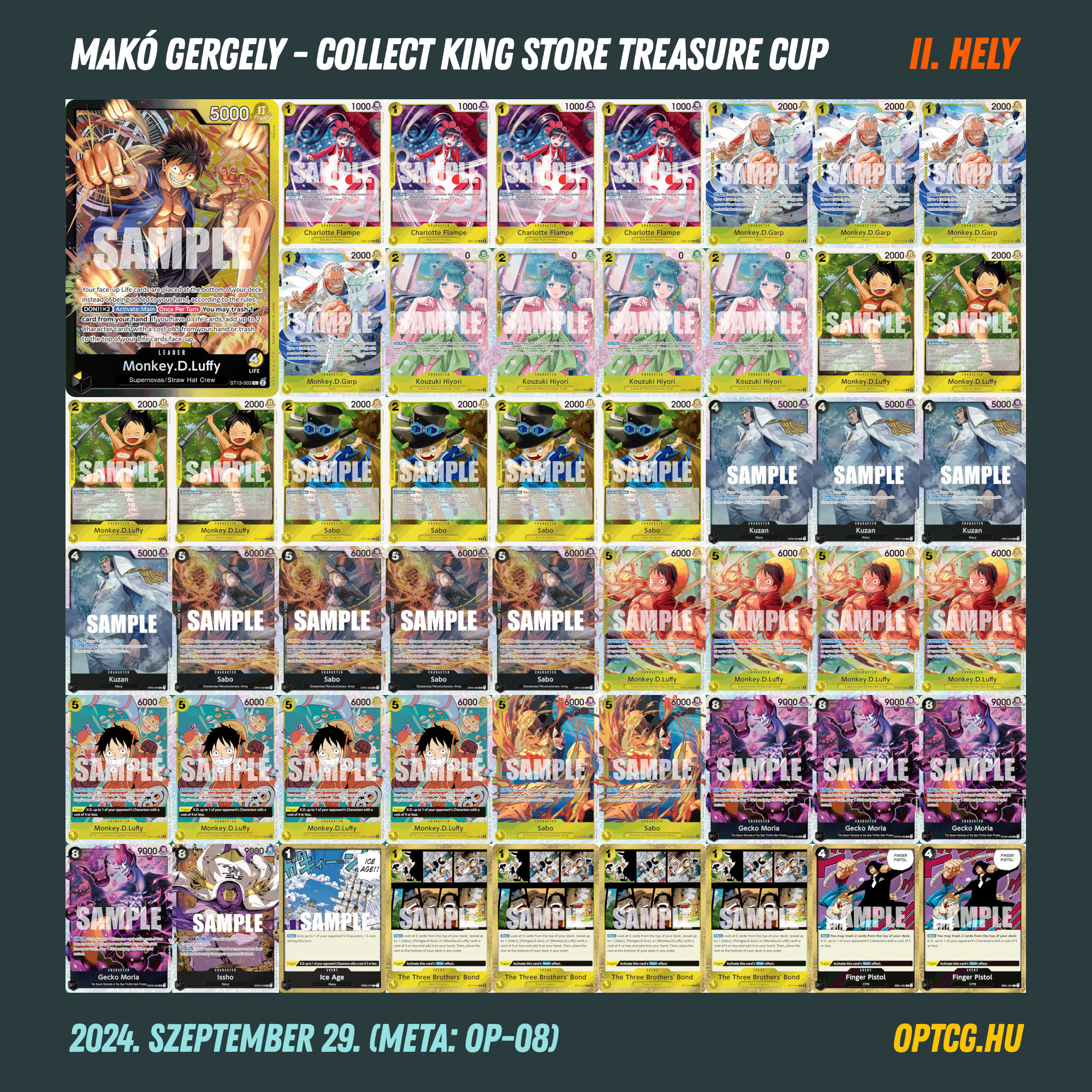 Rövid szünetet követően szeptember végén visszatértek a versenynaptárba a Collect King One Piece-versenyei is, vasárnap pedig sor került a Store Treasure Cup pótlására, melyre 14 játékos látogatott el. Lássuk, milyen deckek kerültek elő ezúttal!