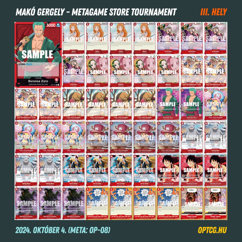3. Makó Gergely (9) – Roronoa Zoro (OP01-001)