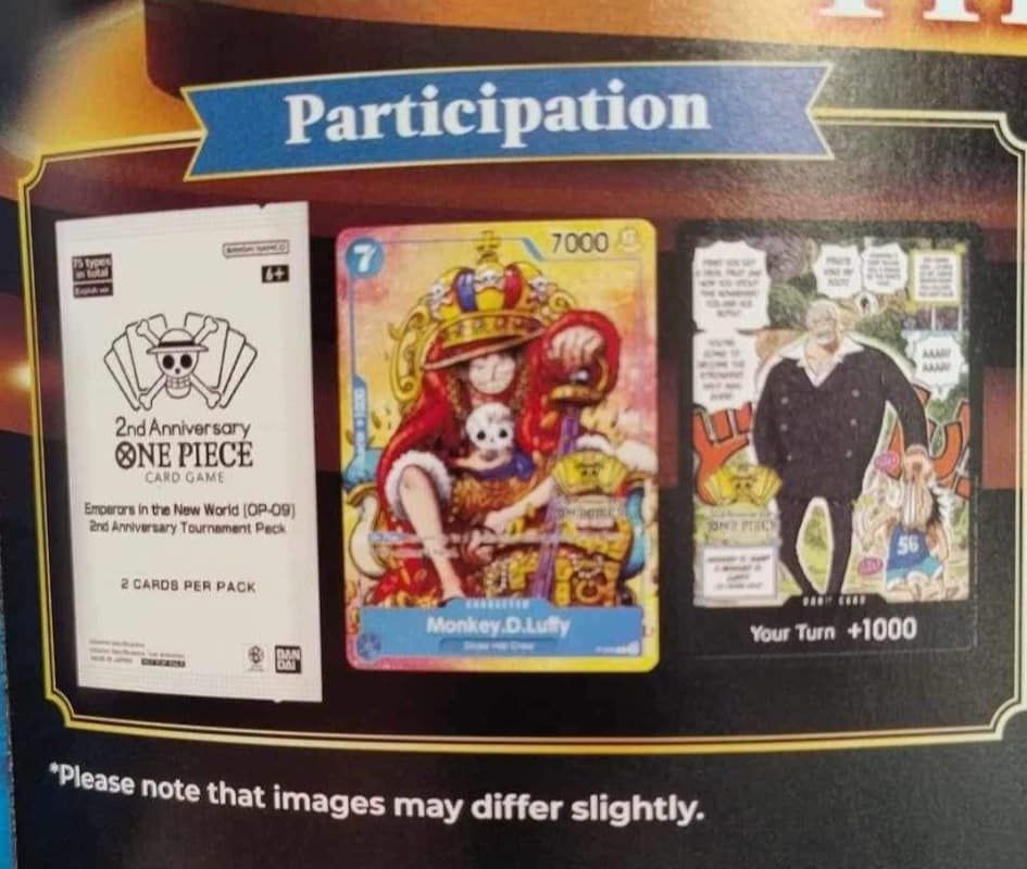 Mivel részben az OP-09 megjelenése előtt, részben pedig utána lesznek a kapcsolódó események, ezért constructed és “bontott” formátumú versenyekre is lehet számítani – ennek kapcsán érdemes lesz majd figyelni a versenynaptárat. Ami biztos, hogy a nevezés mellé egy 2nd Anniversary Tournament Pack fog járni, amiben két kártya fog szerepelni: egy P-043 Monkey.D.Luffy, ami eddig kizárólag néhány amerikai rendezvényen volt megszerezhető, valamint egy új DON!!, ez utóbbit az alábbi fotón láthatjátok.