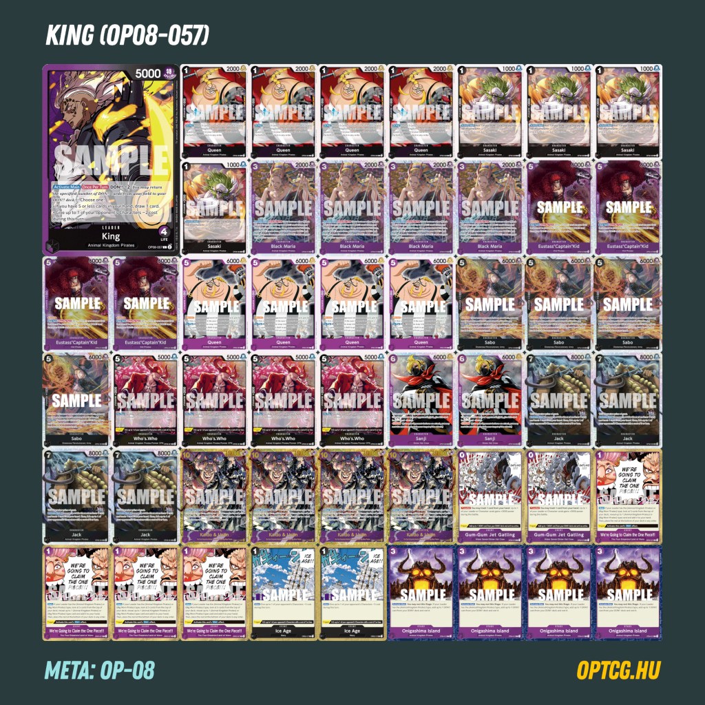 Folytatódik cikksorozatunk, melyben az OP-08-ban megjelent új Leaderekre fókuszálunk, kiindulási pontot nyújtva azok számára, akik szeretnének kihozni belőlük valamit. A soron következő delikvens nem más, mint King, aki nem az első lila-fekete Leader a játékban, de mindenképp az eddigi legnagyobb potenciállal bíró – részben azért, mert az Animal Kingdom Pirates típus izgalmas lehetőségeket nyit meg.