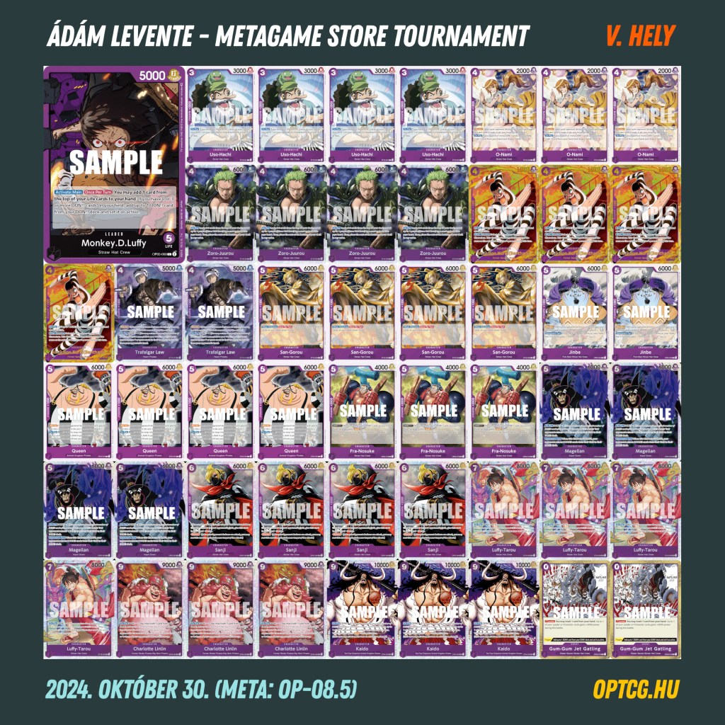 A frissen erősödött Leaderek közül tehát Doffy, a lila Luffy, Smoker és Newgate is felbukkantak, míg a korábbi népszerű meta deckek közül Bonney és a “dongó” Luffy is ott voltak a legtöbbet használtak között, de 3-nál több ezúttal egyikükből sem volt a mezőnyben.