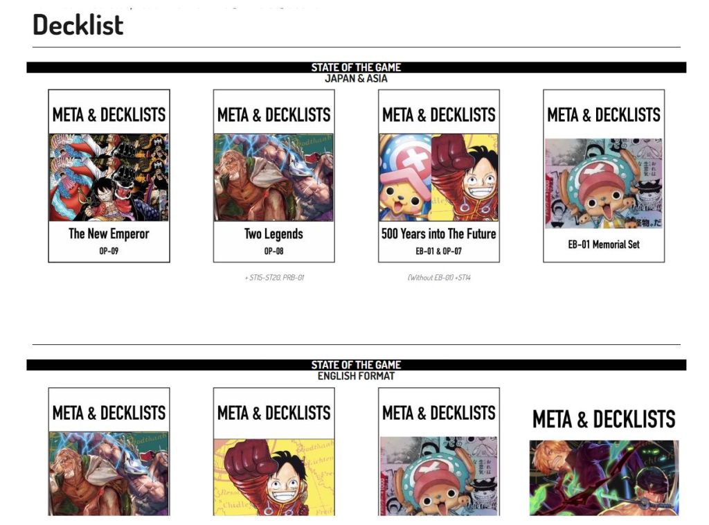 A nemzetközi szinten játszott TCG-k esetében óriási fegyvertény, hogy bődületes mennyiségű információ és statisztika áll rendelkezésre, melyek objektív, tényszerű támaszt tudnak adni a megérzésen, de jobb esetben is csupán személyes tapasztalatokon alapuló gondolatokkal szemben. Leegyszerűsítve: nagy mintán nemcsak az rajzolódik ki jobban, hogy mik a jó paklik, hanem az is, hogy miként kell azokat összerakni. A One Piece Card Game ilyen szempontból még egy extra csavart is tartogat, hiszen Japánban egy szettel korábban tart a játék, így nyugatra kis túlzással “megoldott” meta érkezik mindig – később azért ki fogunk térni arra, hogy ez nem feltétlenül igaz. (“Solved” metának nevezzük azt, amikor már egyértelműen beálltak az erőviszonyok egy adott játékkörnyezetben.)