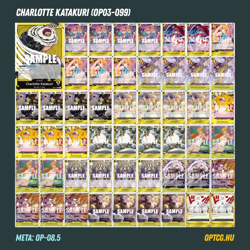 Ahogy a bevezetőben már említettem, egészen más irányokba is el lehet menni a Katakuri Leaderrel, ám a Starter Deckben megjelent új lapok leginkább ezt a vonalat erősítik, így ezúttal én is egy agresszív listát igyekeztem tálalni nektek, kevés reaktív eventtel és sok triggerből kiugró testtel. A lista szokás szerint csak kiindulási alap – finomítsatok rajta kedvetekre, ha jónak látjátok. Jó kísérletezést!
