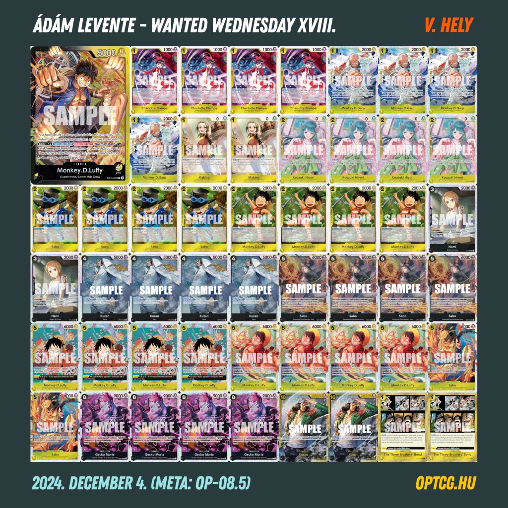 A győzelmet ezúttal Végh Lóránd szerezte meg, aki több második hely után most végre győzelemre vezette Rob Luccit. A képzeletbeli dobogóra egy-egy lila Luffy és kék Doffy állhatott még fel, a 4-1-es helyeken pedig egy további Rob Lucci mellett egy “dongó” Luffyt találunk még.