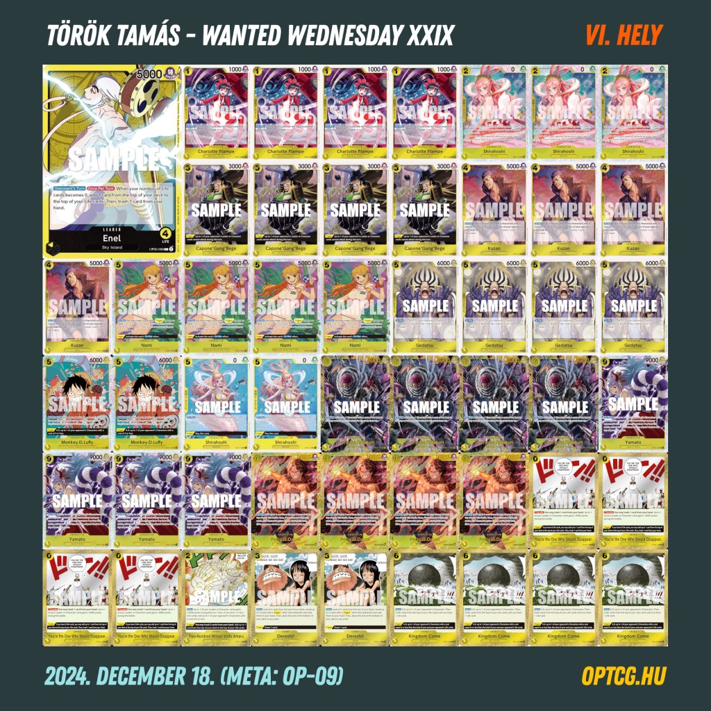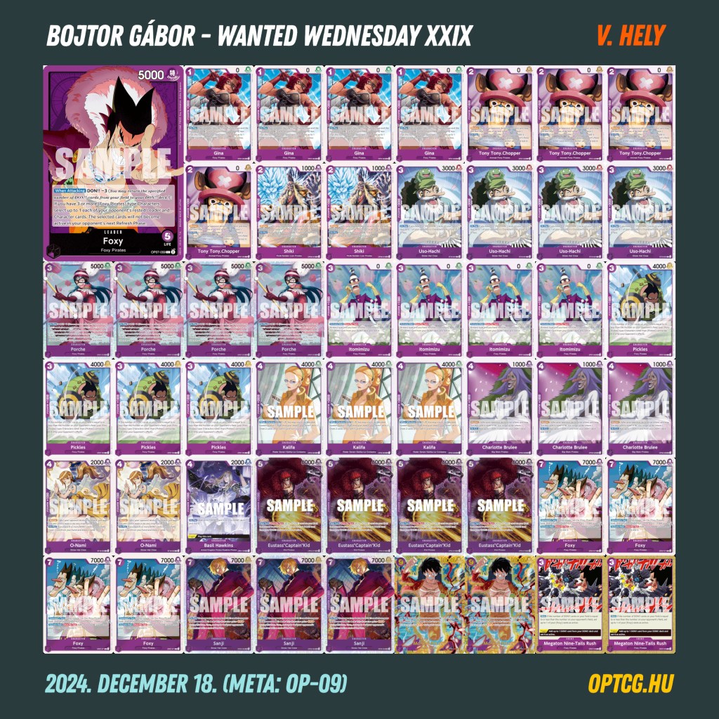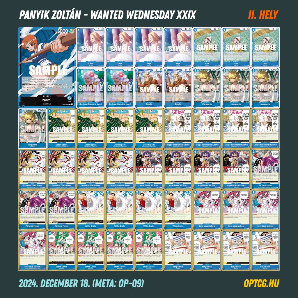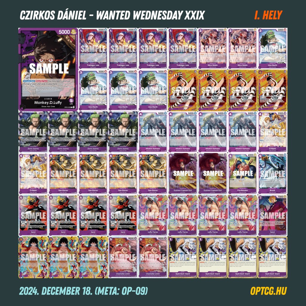 Idén utoljára, összességében pedig már a 29. alkalommal került megrendezésre december 18-án a Wanted Wednesday versenysorozat a Meta Klubban, ezen alkalomból pedig egészen parádés létszám jött össze a szerdai One Piece versenyre, hétközi rekordnak számító 40 játékos látogatott el ugyanis a megmérettetésre. Így alakult a meta: