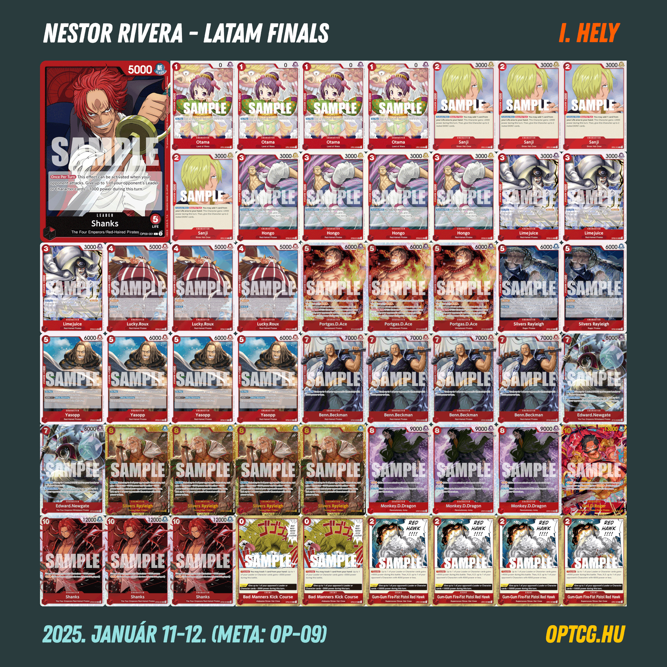Ahogy az előző hétvégén, úgy a Doffyk közül ezúttal sem sikerült egyiknek sem behúznia a versenyt, a győzelmet ugyanis Nestor Rivera szerezte meg, méghozzá Shanksszel (éppen egy kék decket legyőzve a döntőben), megszerezve ezzel a Leader első győzelmét nagy versenyen. A dobogóra ráadásul egy Enel is felállhatott.