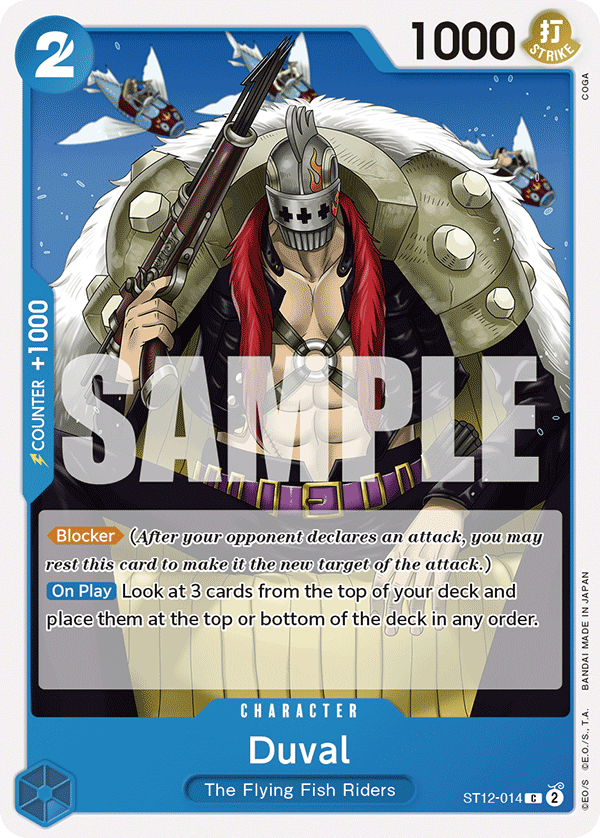 Donquixote Doflamingo (OP01-073): Lényegében az előző funkció, csak eggyel drágább, cserébe jóval erősebb kivitelben, hiszen a test is nagyobb, illetve a megtekintett lapok száma is.