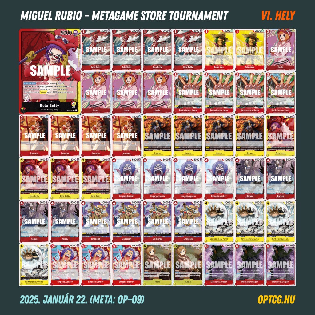 Az ötfordulós verseny végül szokatlan győztest hozott, Györki Dávid ugyanis a top koncepciók közé mostanában visszaszivárgó Katakurival húzta be a versenyt. Nagyon jól teljesítettek a szintén feltörekvőben lévő Belo Bettyk is, melyekből kettő is befért az élmezőnybe, méghozzá egy-egy Shanks, BY Luffy és Lucci mellett.