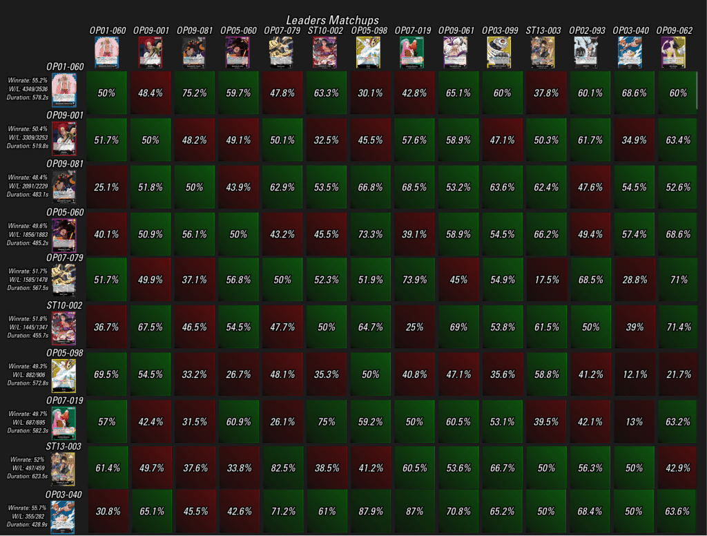 Ami a többieket illeti, ezúttal a BY Luffy, Lucci, az RP Luffy és Shanks zártak pozitív winrate-tel, a többiek már 50 százalék alatti győzelmi aránnyal következnek.
