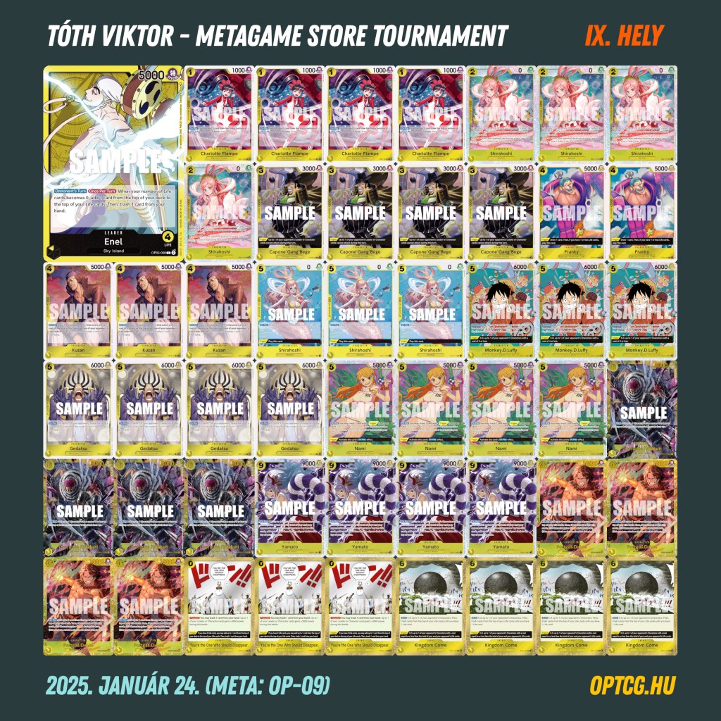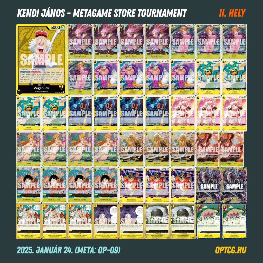 Egy nap pihenőt követően pénteken ismét verseny várta a hazai One Piece-mezőnyt a Meta Klubban, a lelkesedéssel pedig nem volt gond, hiszen 23 fő gyűlt össze, ami a pénteki versenynapokon kifejezetten jó létszámnak számít. Mutatjuk, milyen meta alakult ki: