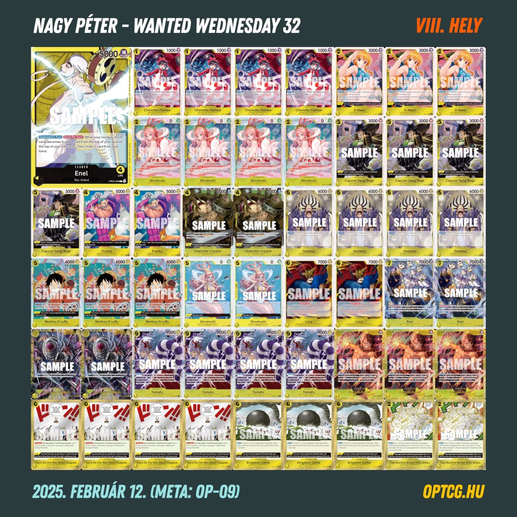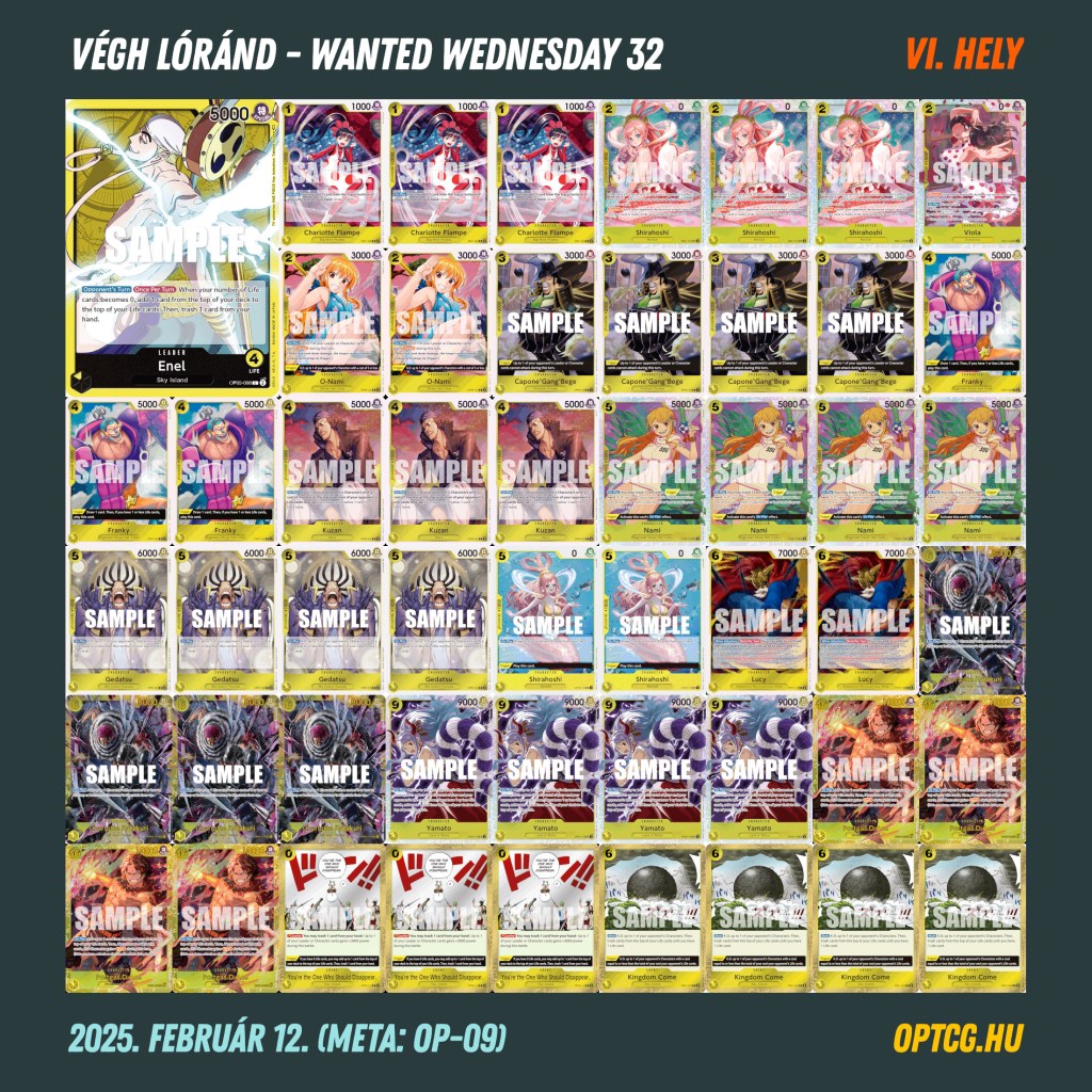 Az ötfordulós verseny döntőjében Kalenics Máté Doffyja nézett farkasszemet Gergely Ferenc lila Luffyjával, és végül a kék paklit forgató játékos győzedelmeskedett, így ő is csatlakozott a “Most Wanted” elit táborához, akik ősszel csaphatnak majd össze egymással egy exkluzív versenyen. 4-1-es mérleggel heten zártak, az élmezőny pedig most is nagyon változatos lett, mindössze Enelből ért oda kettő is.