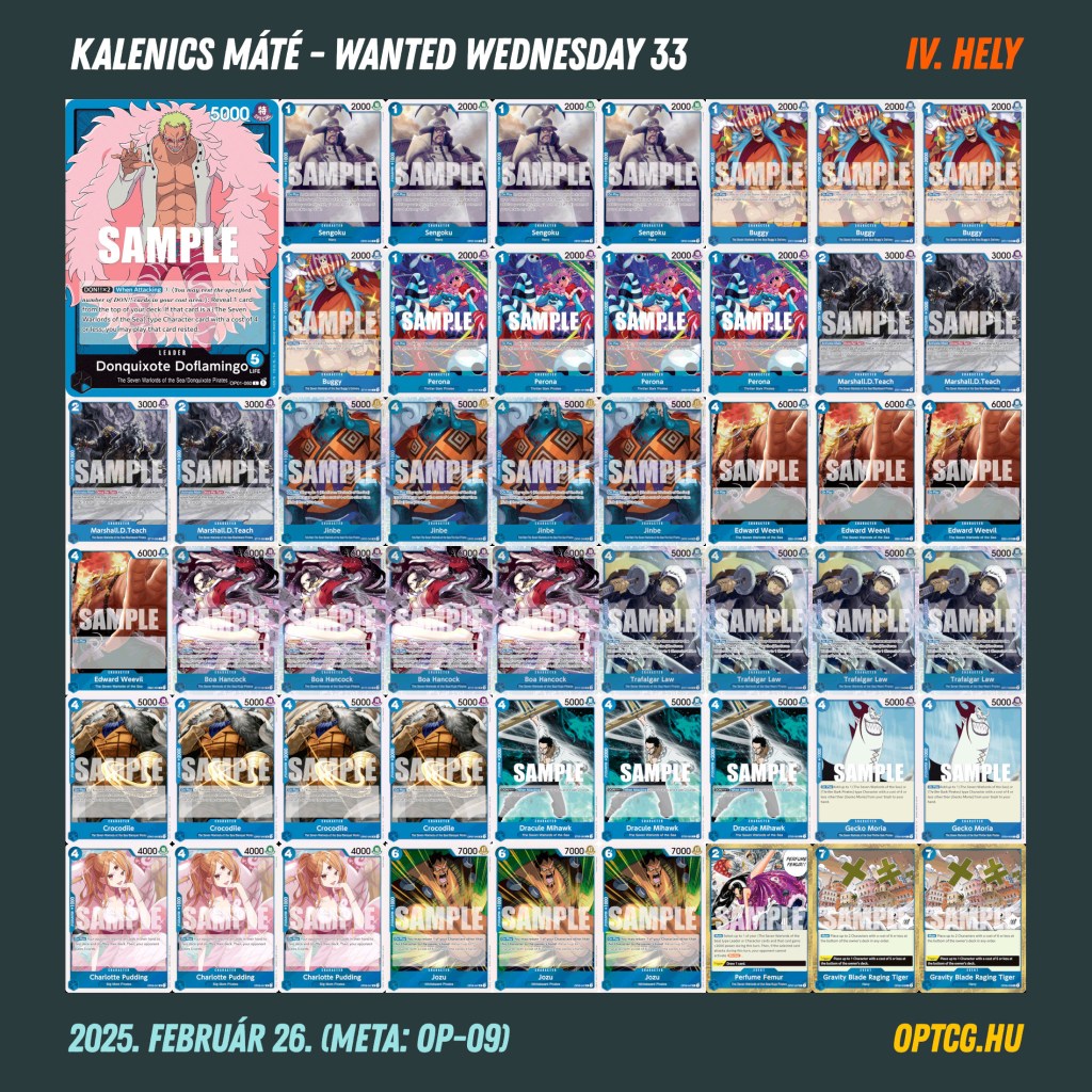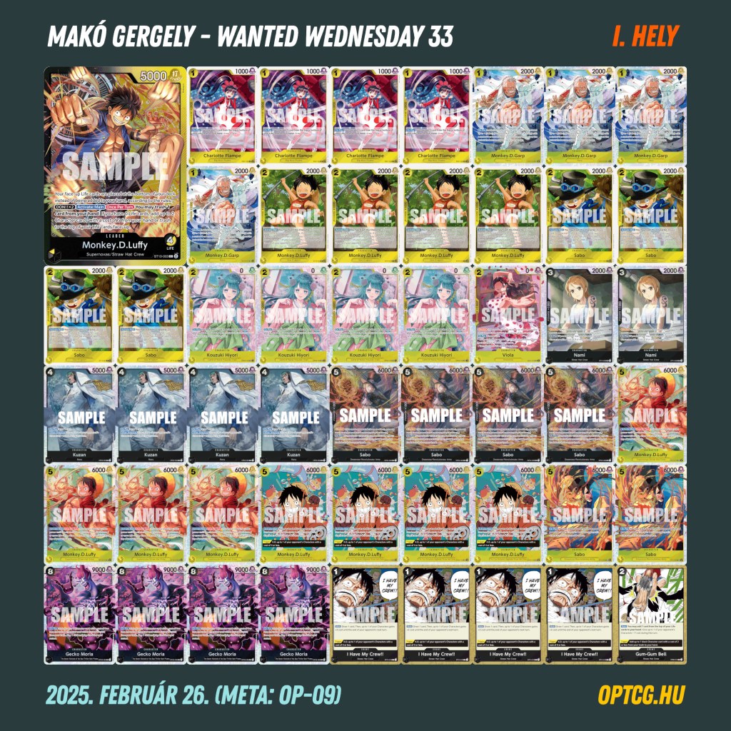 Manapság már egyáltalán nem vártalan, ha akár 40 játékos is felbukkan egy-egy szerda One Piece-versenyen a Meta Klubban, így aztán nem okozott különösebb meglepetést, hogy 43 játékos nevezett be a Wanted Wednesday 33. felvonására, ahol ezúttal Marco volt az extra nyereményekkel kecsegtető Leader. Íme a meta: