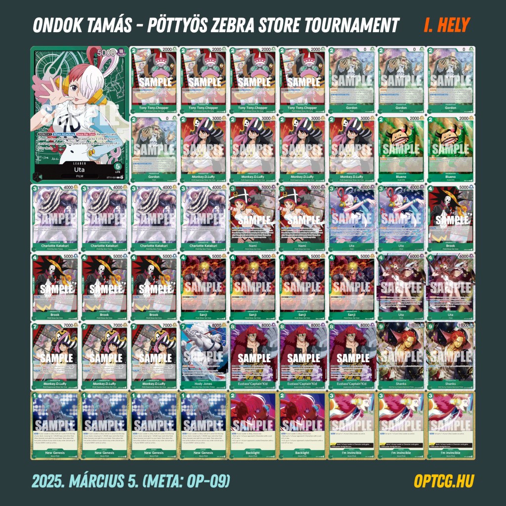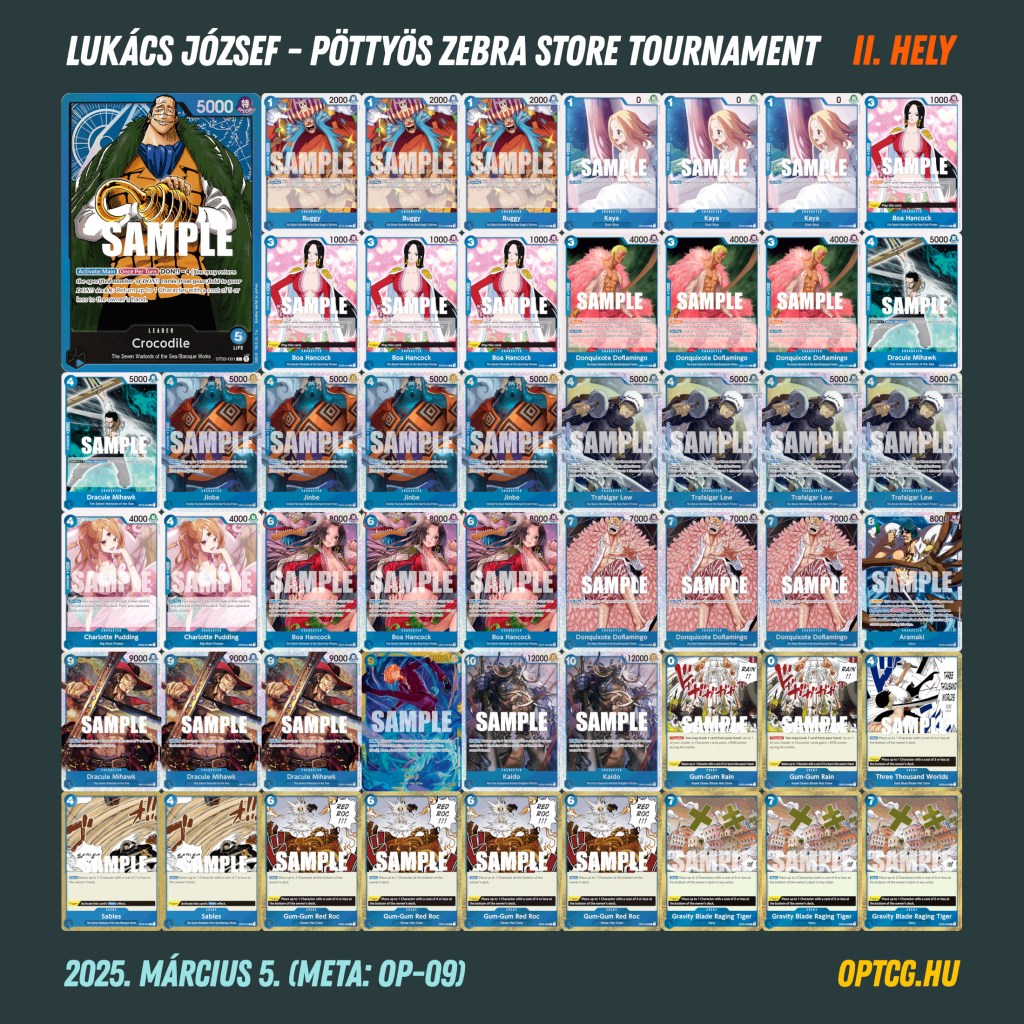 Összesen tehát 21 Leader esett ki, ami a megszokottól totálisan eltérő metát eredményezett. A 15 résztvevő ráadásul még így is csupa különböző választással érkezett, így alighanem kijelenthetjük, hogy a magyar One Piece-versenyek történetének legegzotikusabb játékkörnyezete mellett zajlott a verseny: