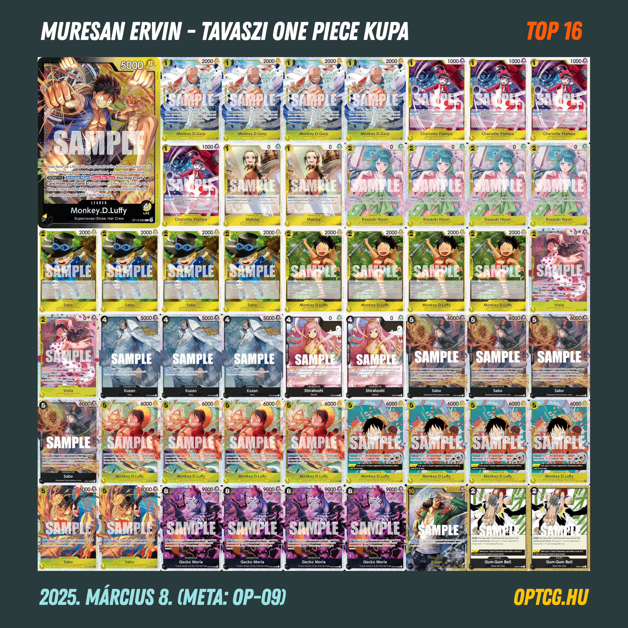 - Makó Gergely (15) – Monkey.D.Luffy (ST13-003)