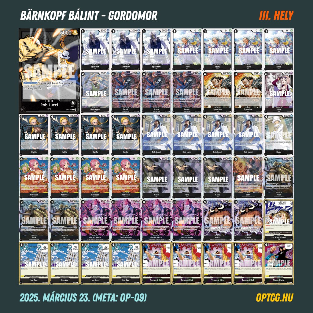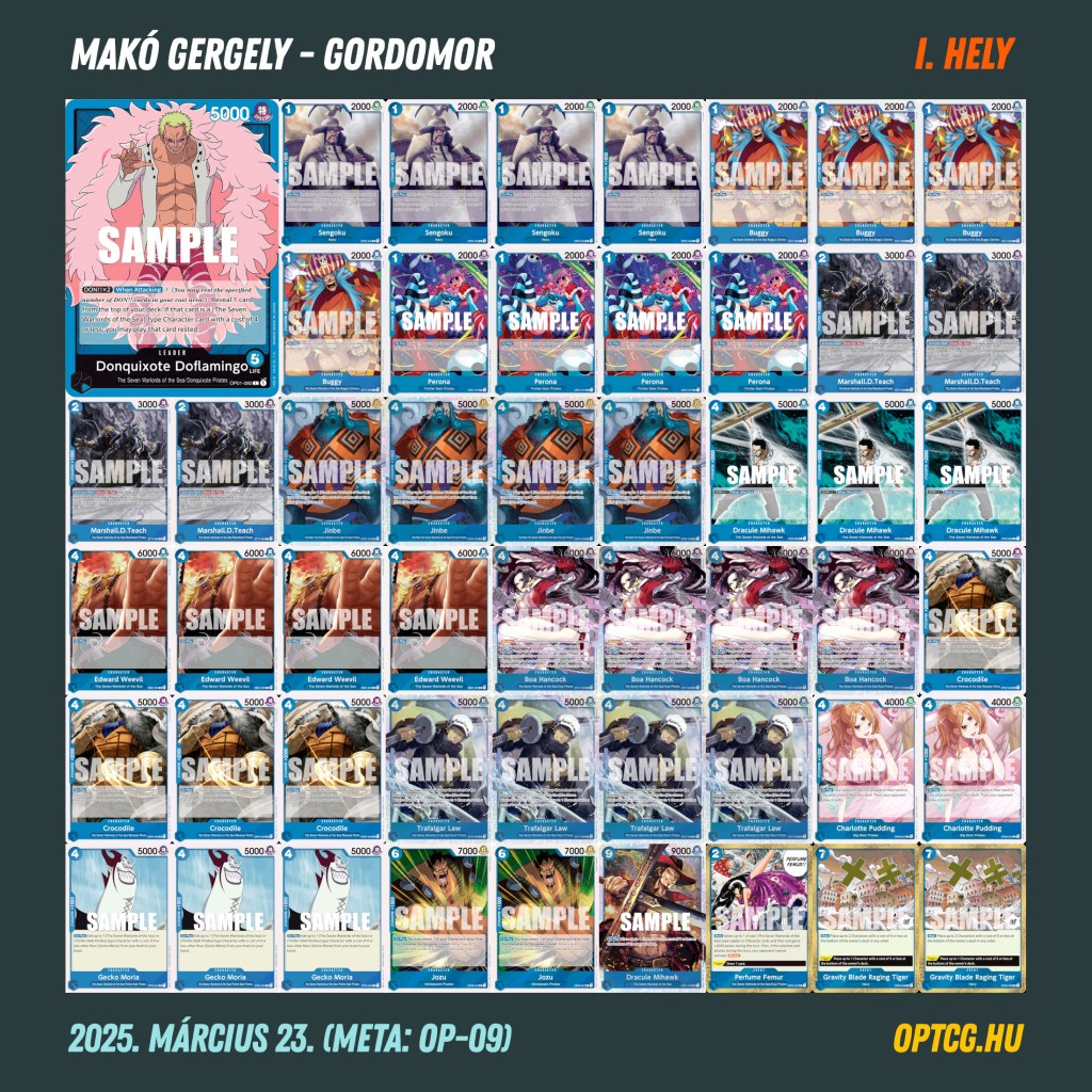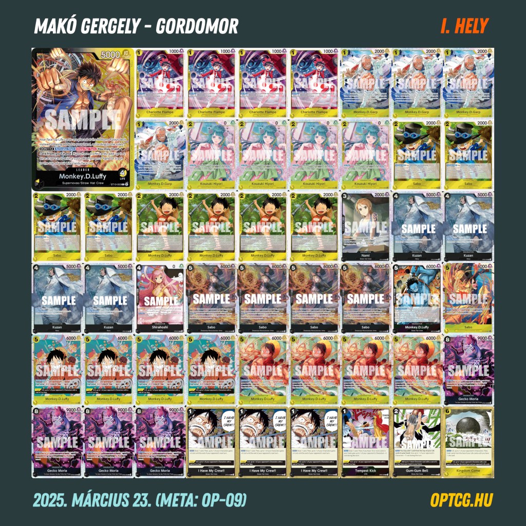 Az öt fordulót követően nem maradt száz százalékos játékos: a legjobb eredményt Makó Gergely érte el, aki a kék Doffy, Lucci, BY Luffy trióval 4-1-gyel zárta a napot, ezzel ő várhatja lépéselőnyből a folytatást. Íme a verseny végeredménye: