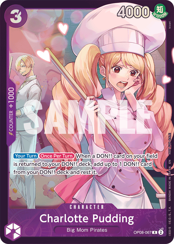 Nem marad el persze az extra díjazás sem szokás szerint: az első négy helyezett további 1-1 Event Pack Vol. 6-tal lesz gazdagabb, a verseny győztese pedig Charlotte Pudding (OP08-067) alternatív grafikás változatát nyeri, amit kizárólag ezeken az eventeken fognak osztani. A szervezőknek járó csomag egyébként kettőt is tartalmazni fog ez utóbbiból – a másodikat ajánlás szerint sorsolni fogják a résztvevők között.