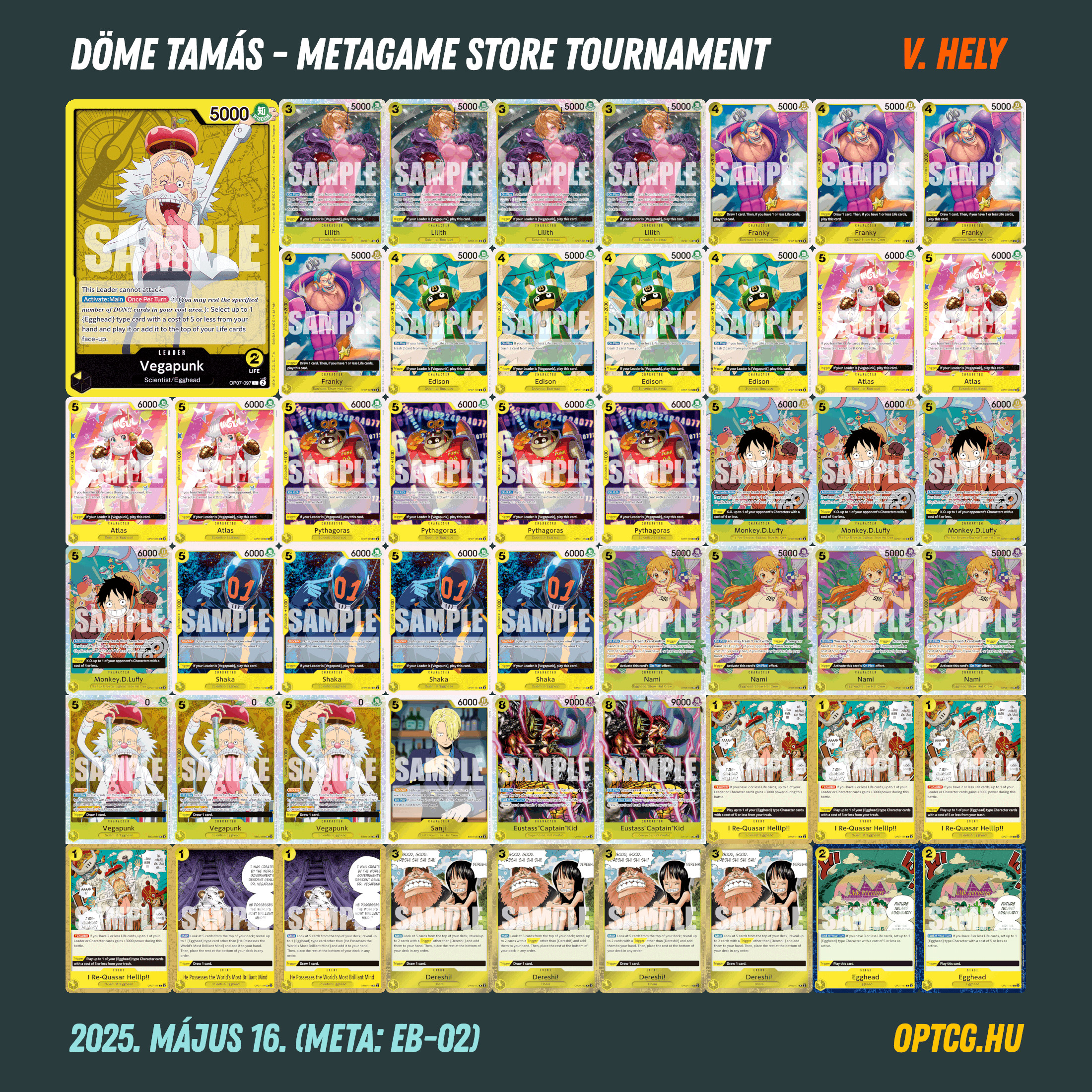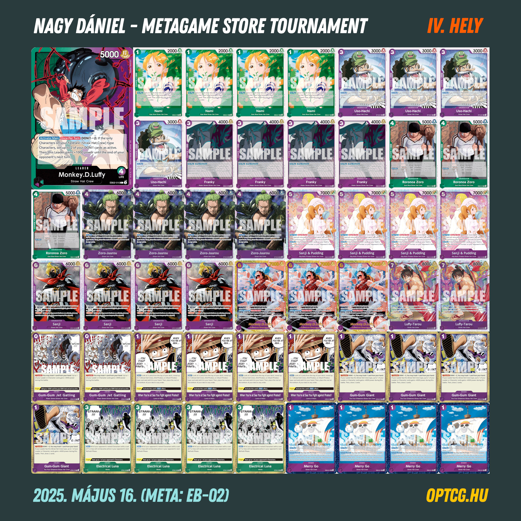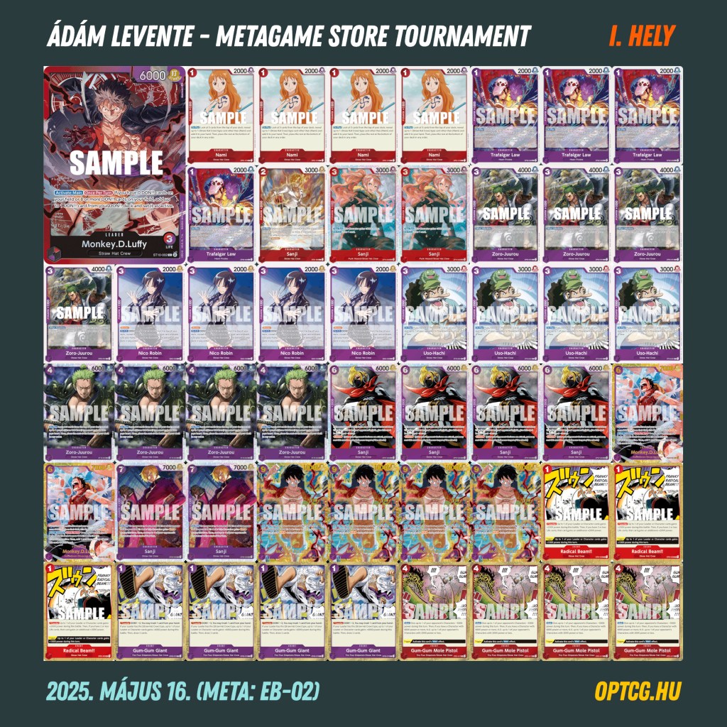 A négyfordulós verseny döntőjében Ádám Levente RP Luffyja és Egyed Dávid Katakurija csaptak össze, a győzelmet pedig végül előbbi szerezte meg. Az élmezőnyben csupa különböző Leader zárt, egy-egy Shanks, GP Luffy, Vegapunk, Reiju és Bonney odaférve a 3-1-es helyekre.
