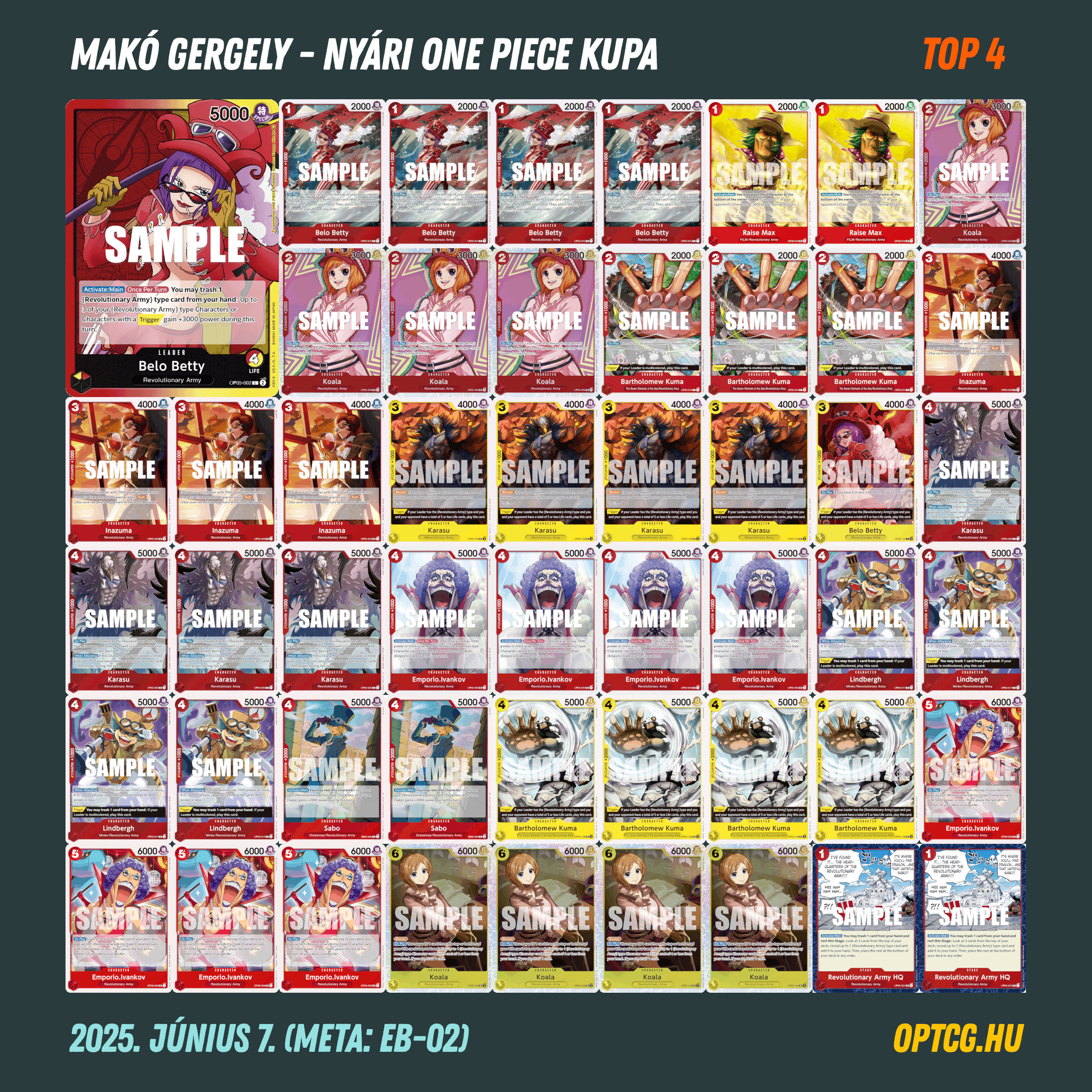 Nagyon erősen konvertált tehát a GP Luffy, a hét őt forgató játékosból négy is eljutott a top cutig, de Belo Bettyből is ott volt azért kettő a legjobbak között, akik így jó esélyekkel várhatták a folytatást.