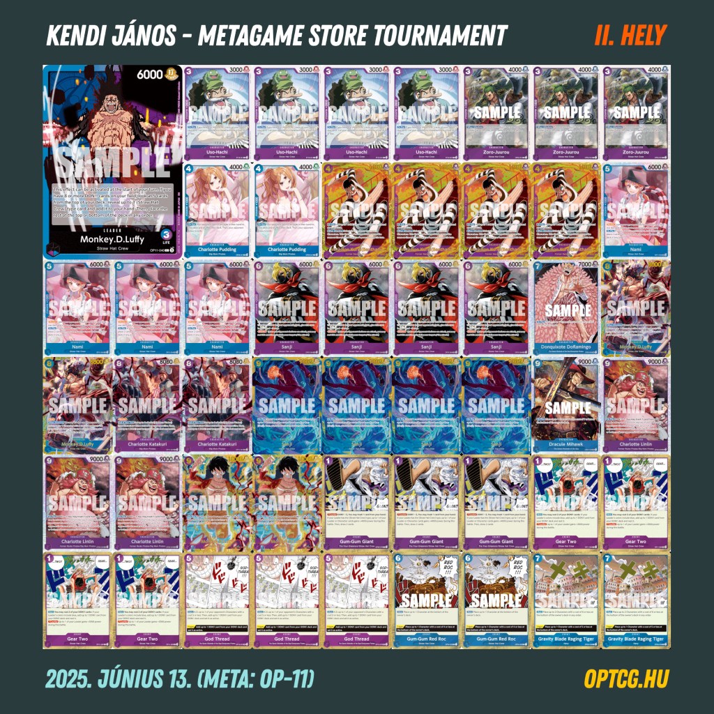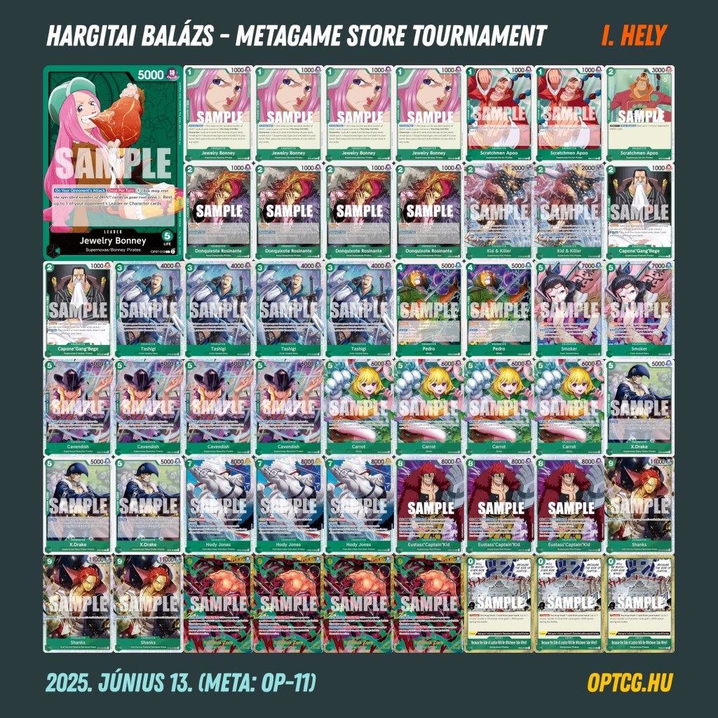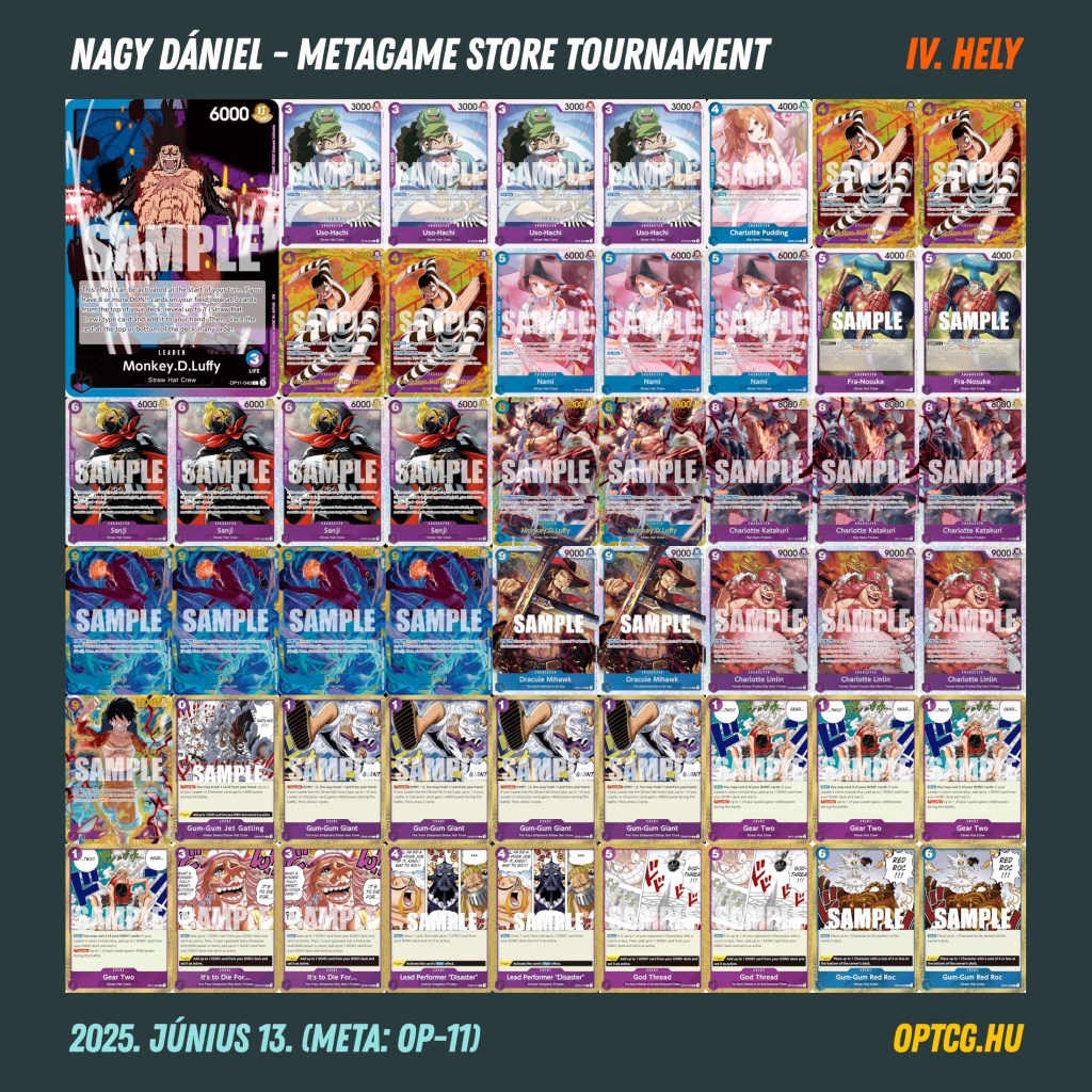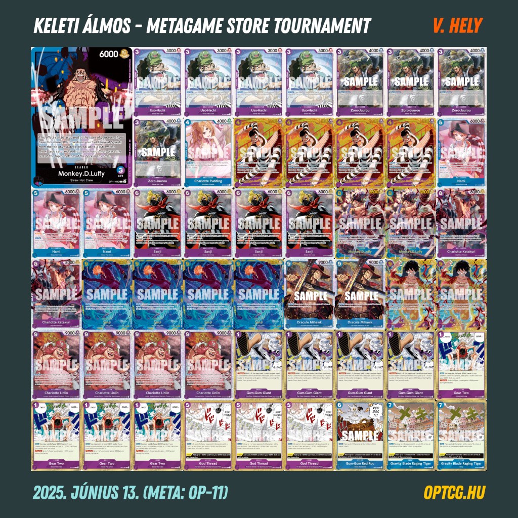 A négyfordulós versenyen végül nem az egyik UP Luffy, hanem Hargitai Balázs szerezte meg a győzelmet, természetesen a tőle jól megszokott Bonney deckkel. A 3-1-es helyekre azonban három is befért az új Leaderből – egy GY Law tudott még odaférkőzni az élmezőnybe.
