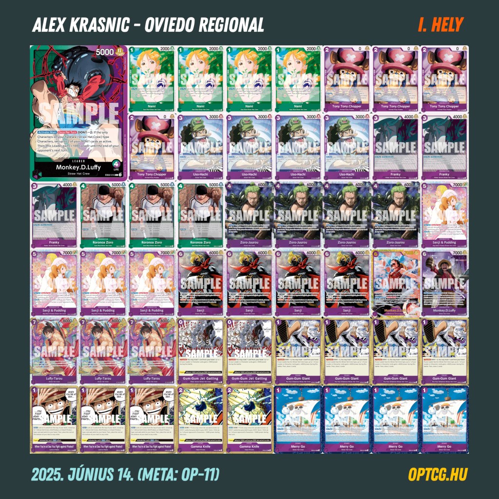 Az egyetlen 9-0-s játék végül Alex Krasnic lett, aki GP Luffyval húzta be a versenyt. 8-1-es eredménnyel további két GP Luffy mellett négy BP Luffy, valamint egy-egy Newgate, Buggy és UP Luffy zárt.
