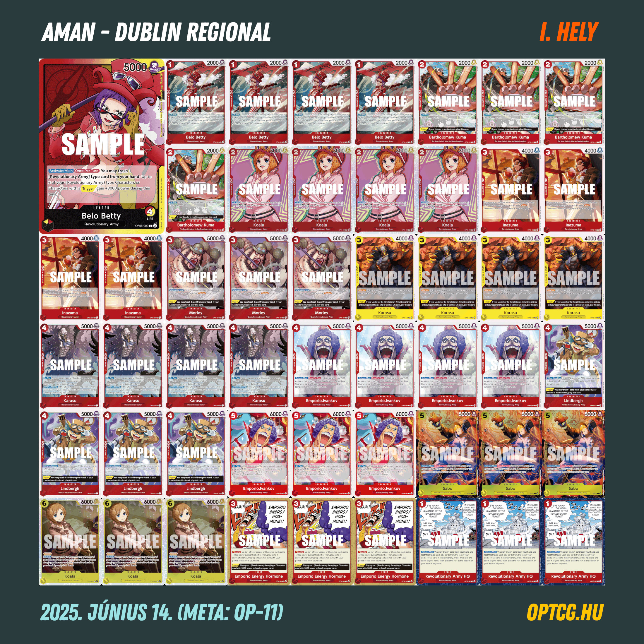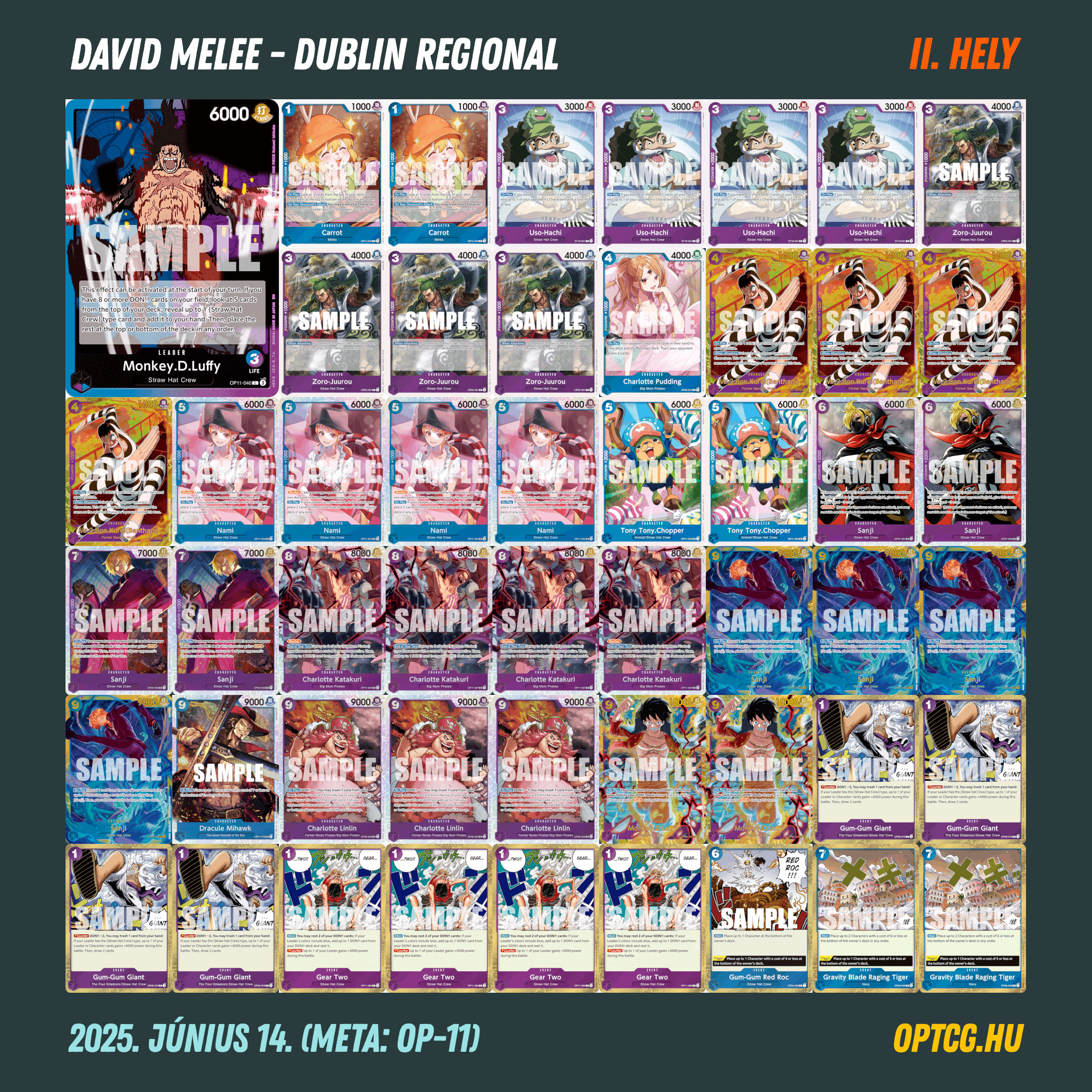 Kiemelkedően teljesítettek tehát a zöld-lila Luffyk, a döntőig azonban végül egy Belo Betty és egy kék-lila Luffy jutott el, ami előbbi győzelmével zárult, így Dublinban az ellendeck ért oda a top meta paklik helyett. A legjobb GP Luffy az elődőntőig jutott, és meglepetésre az RG Smoker is Top 4-ben tudott zárni.