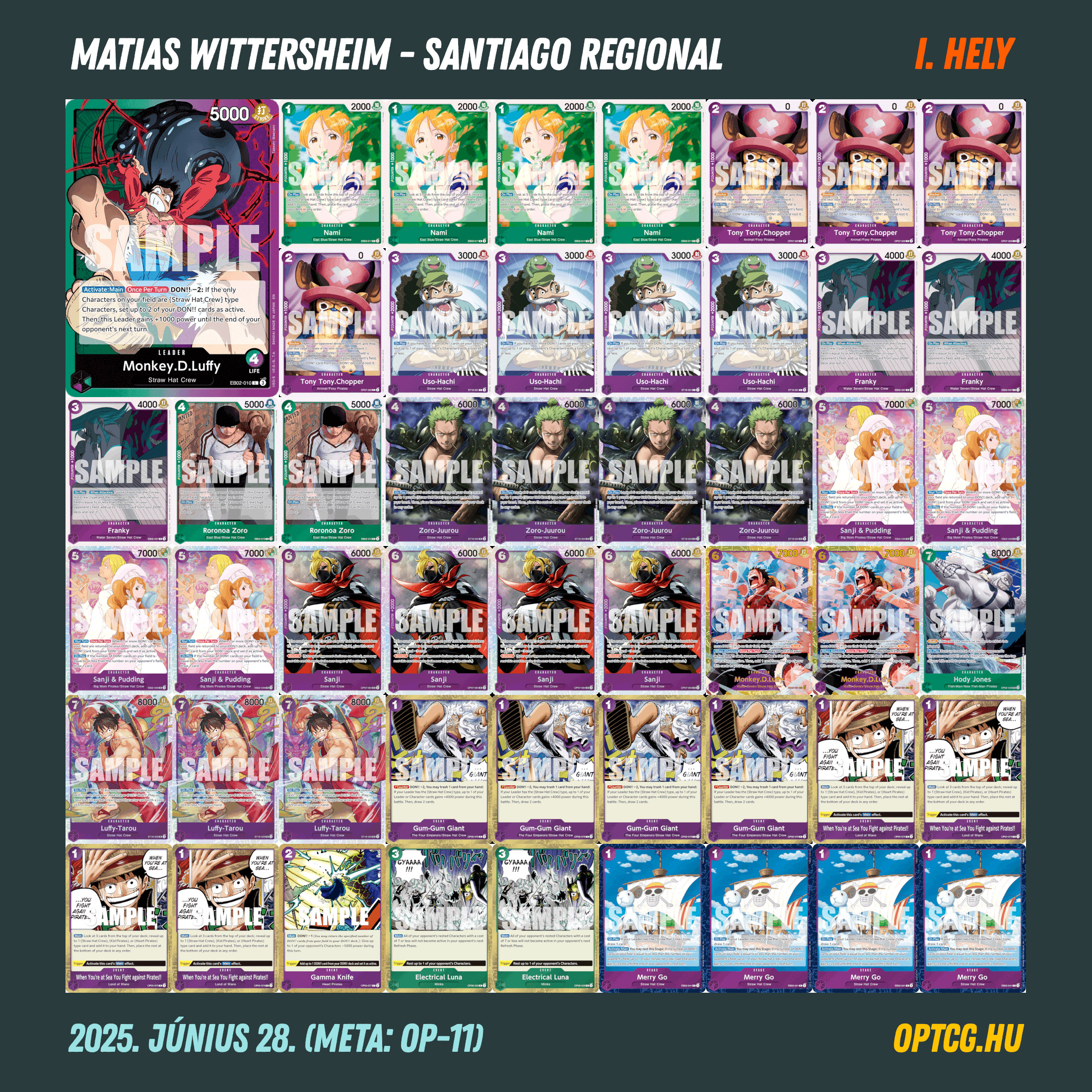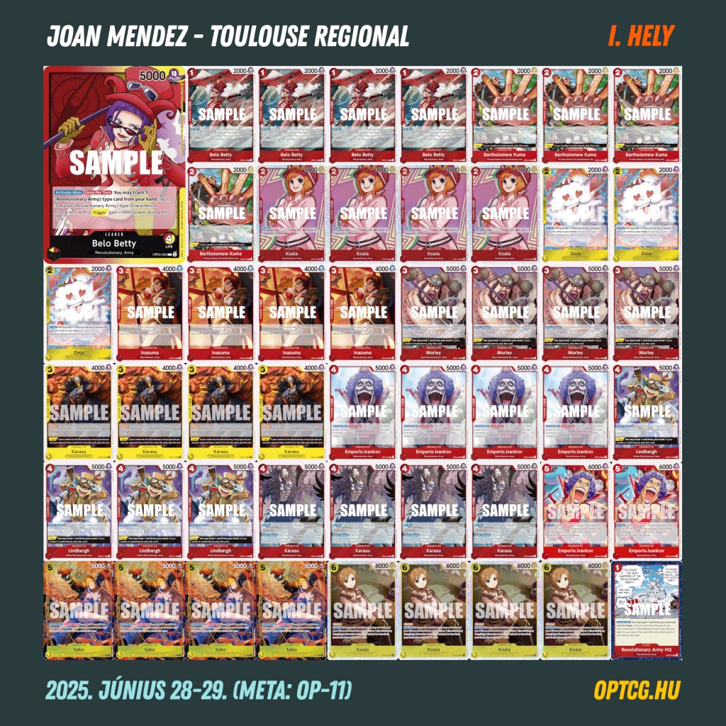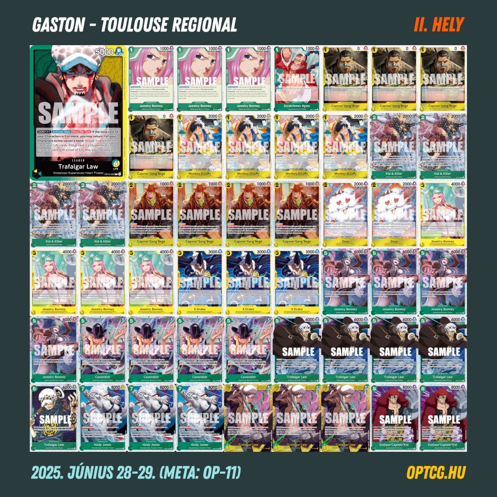 A mindössze 15 éves Gaston pár hónapon belül már a második Regional-döntőjét játszotta, ezúttal GY Law-val, most azonban nem jött össze a végső siker – azt Joan Mendez szerezte meg, méghozzá Belo Bettyvel, így itt is a piros-sárga aggro koncepció győzedelmeskedett. A Top 4-be egy-egy Buggy és UP Luffy ért oda, amivel egészen színes lett végül az élmezőny.
