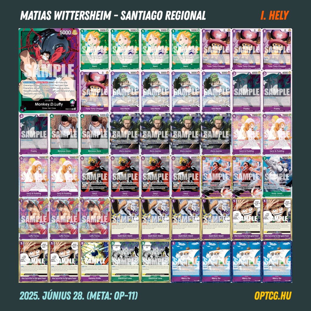 Végül ez lett az egyetlen Regional-verseny a hétvégén, amit nem Belo Betty nyert, Alvaro Salinas ugyanis elvérzett a döntőben – a végső győzelmet Matias Wittersheim szerezte meg GP Luffyval. A Top 4-ben egy-egy BP Luffy és Rob Lucci zárt.