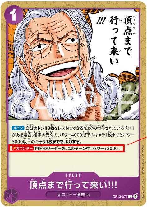 [Counter] Up to 1 of your Leader gains +3000 power for this battle.
