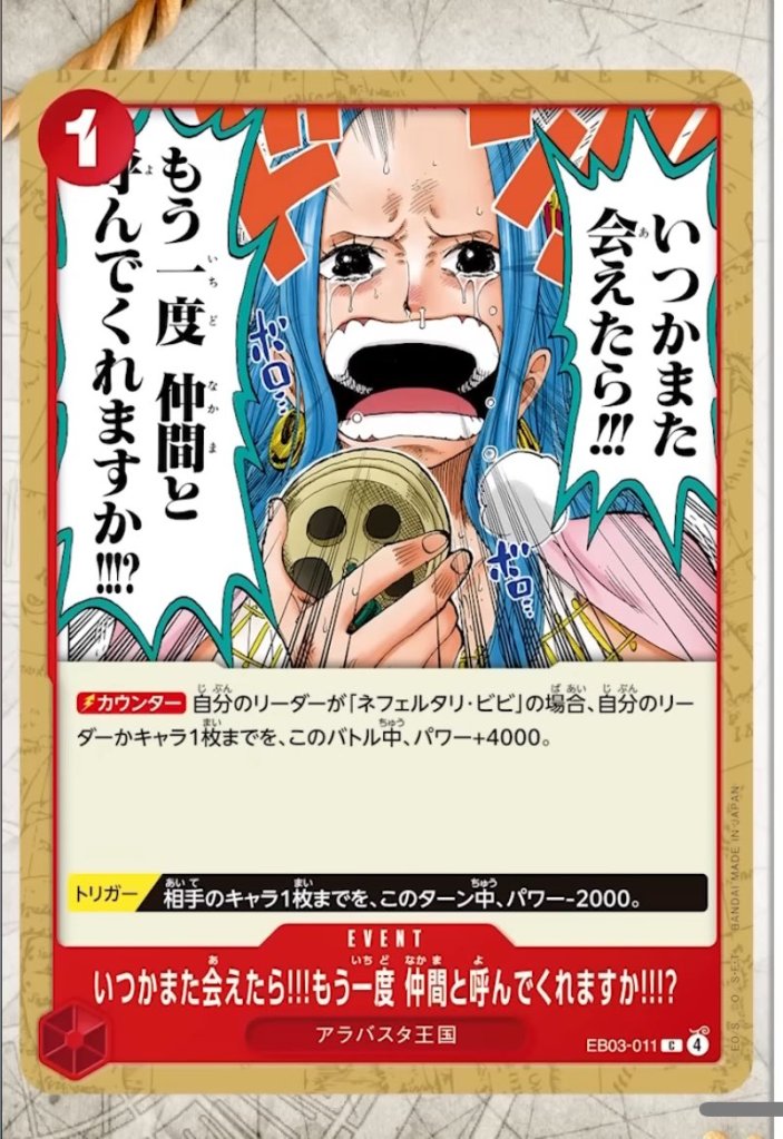 [Counter] if your Leader is “Nefertari Vivi”, give up to 1 of your Leader or Characters +4000 Power for this battle.