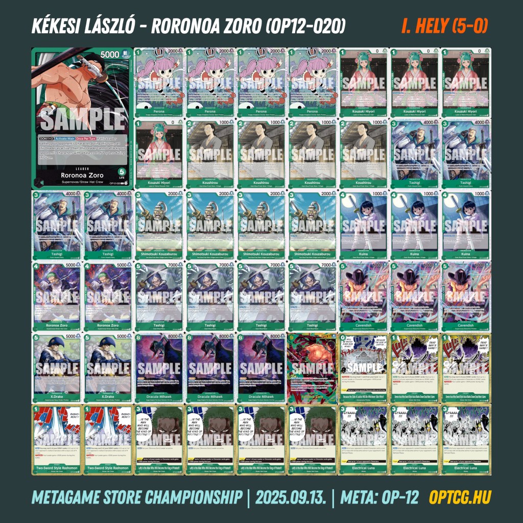 1. Kékesi László (15) – Roronoa Zoro (OP12-020)