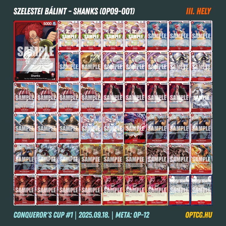 A hazai One Piece-közösség számtalanszor bizonyította már, hogy mennyire elkötelezett a játék iránt, most pedig újabb sikersztoriról van alkalmunk beszámolni, elstartolt ugyanis a Conqueror’s Cup: egy új online versenysorozat, ahol az OPTCGSim-en keresztül csaphatnak össze a játékosok. Az érdeklődés pedig nem maradt el, összesen 33 játékos nevezett ugyanis a megmérettetésre, melynek a fődíja egy bontatlan OP-09 display volt. Íme a meta: