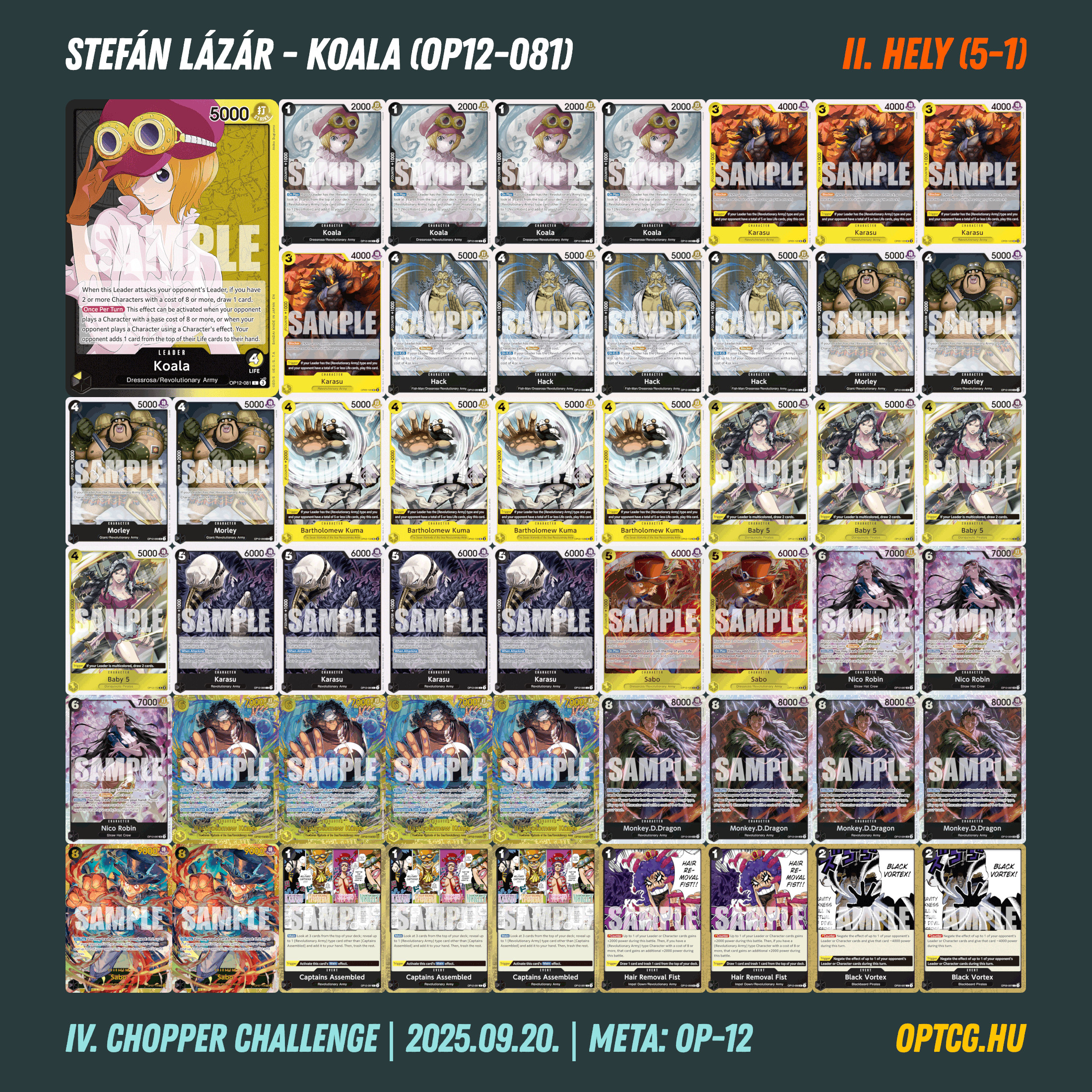 Gratulálunk mindenkinek, és köszönjük, hogy ennyien eljöttetek – a legjobbak listáit lent láthatjátok. A következő Chopper Challenge januárban várható, de addig is lesz két OP Kupánk, illetve a novemberi rekordkísérlet, ami reményeink szerint az eddigi legnagyobb hazai One Piece-verseny lesz – reméljük, ott is minél több kezdőt és amatőrt fogadhatunk majd. Részletek hamarosan!