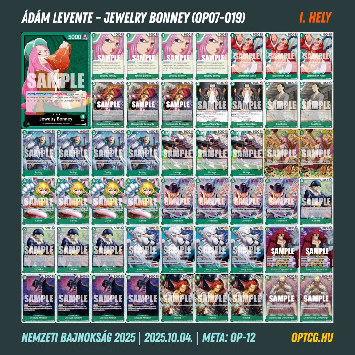 Az erős és stabil 6-0-s nyitás után alapvetően elég nyugodt voltam a top cut előtt, főleg, hogy kvázi mindenhol fixen kétszer dönthetek a legrosszabb esetben is. A deckfelhozatal egészen biztatónak tűnt számomra, így amiatt sem kellett stresszelnem, hogy valami kellemetlen “mumus” fog velem szemben ülni az UP Luffykon kivül (amik ellen volt már egy adag rutinom), és ott is bőven segített a dupla hátul menés. Így összességében úgy éreztem, innen – ha Fortuna is úgy akarja – le lehet már hozni ezt a napot a rutinból fakadó előnnyel és a jó listával, amit magammal vittem. A top cutból több potenciális ellenfelemet sikerült megvernem az alapszakasz során is, így ez is adott némi bizalmat és nyugodtságot a továbbiakban.