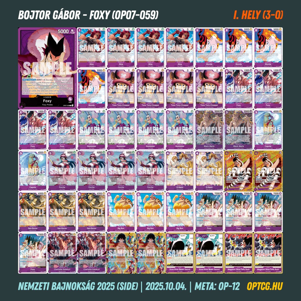 A miniverseny három forduló alatt le is pörgött, a győzelmet pedig Bojtor Gábor szerezte meg, méghozzá nem akármilyen Leaderrel, hiszen az általa régóta pártfogolt Foxyt vezényelte az első helyre – itthon először nyert versenyt ez a lila koncepció. Két győzelemmel összesen hatan zártak, közülük Szilágyi János (BP Luffy) és Köteles Dániel (Bonney) állhattak fel a képzeletbeli dobogóra. Az első három helyezett listáját lent láthatjátok – gratulálunk a helyezetteknek!