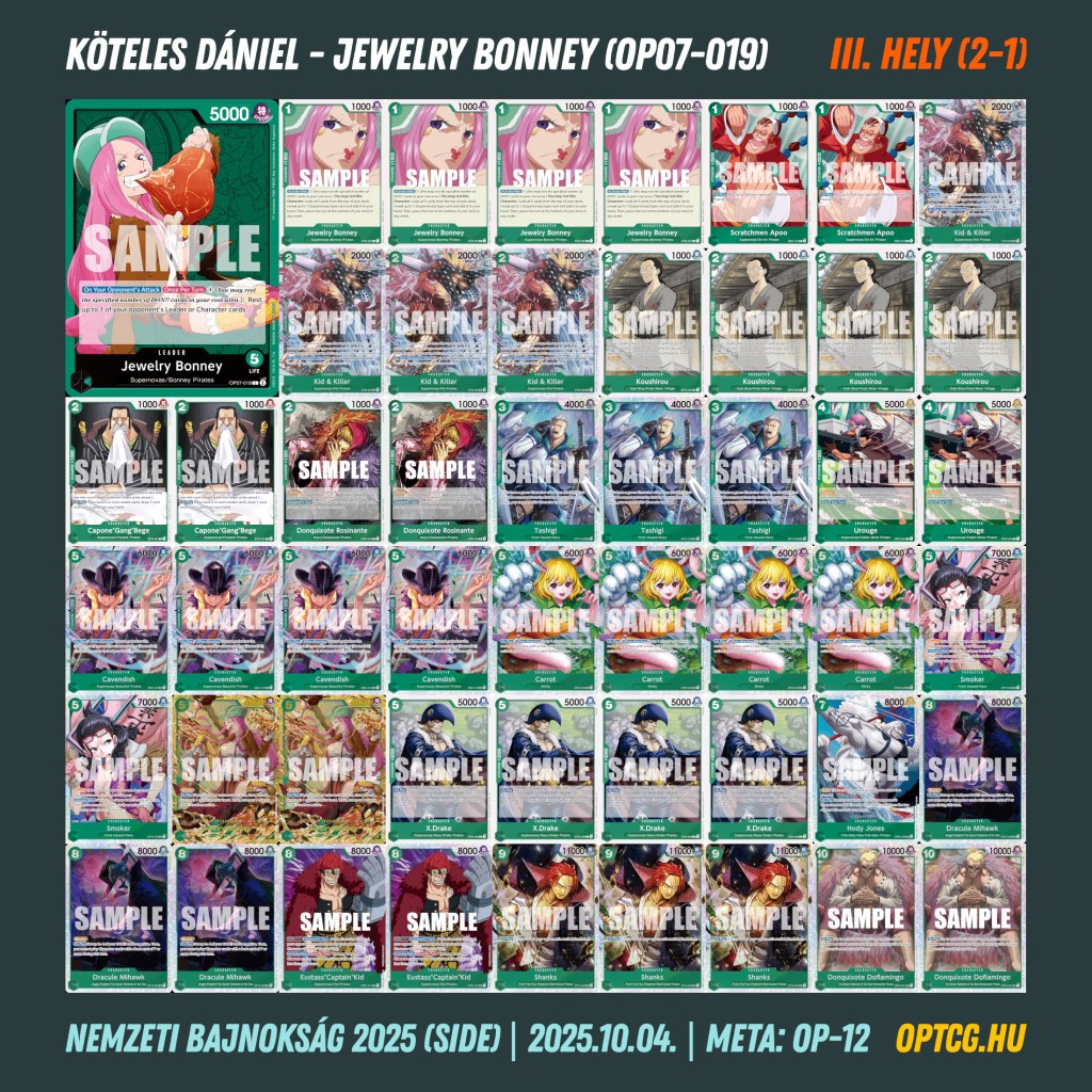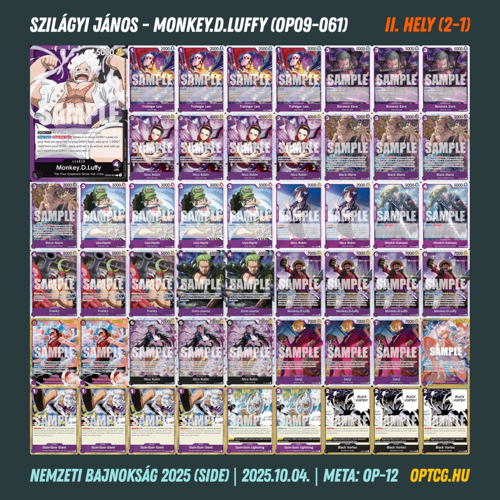 A hétvégi Nemzeti Bajnokság alapszakaszát követően egy side event is indult azok számára, akik a fő eseményen nem indultak, vagy esetleg itt szerettek volna vigasztalódni a kiesést követően. Végül 11 játékos döntött úgy, hogy harcba száll a nyereményekért – ők az alábbi paklikat forgatták.