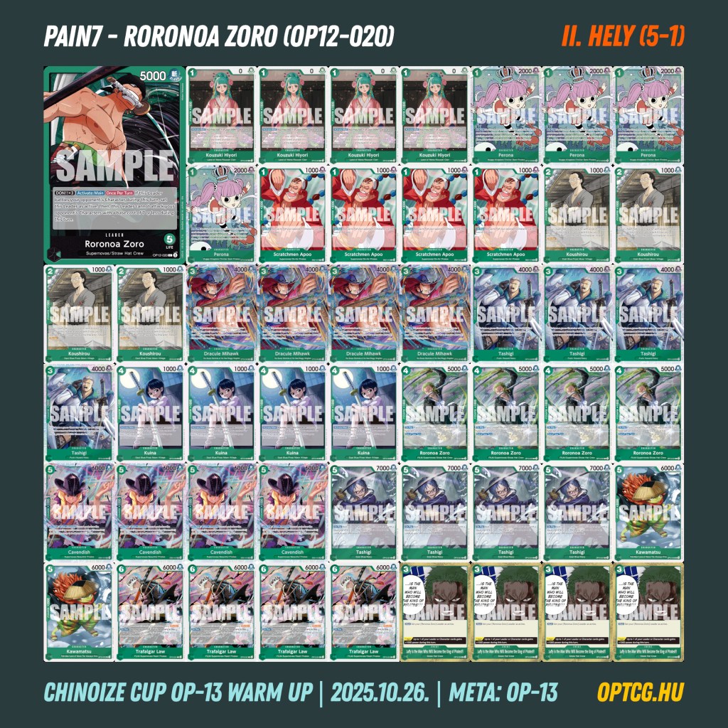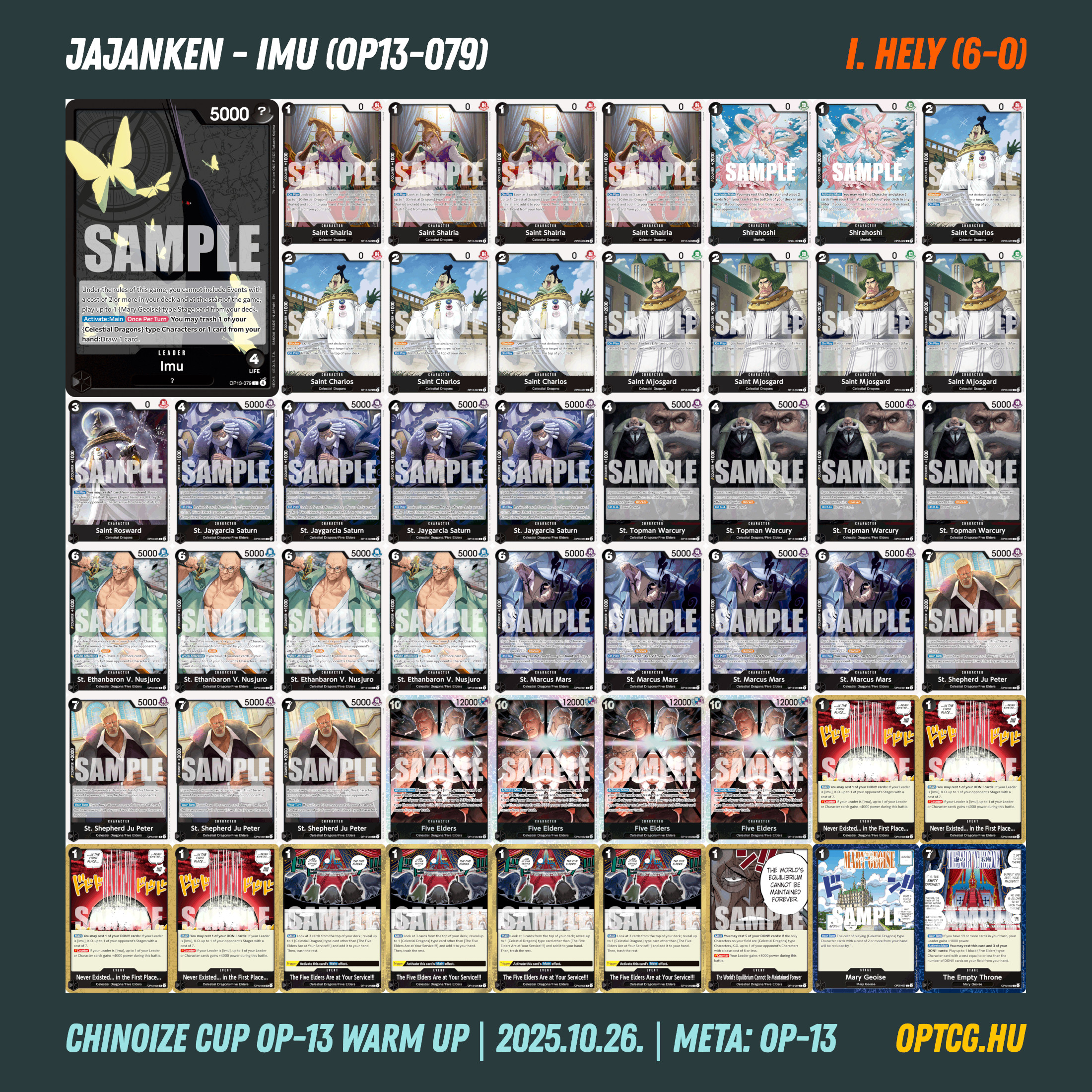 A nagy számok törvénye alapján nem meglepő, hogy végül a versenyt is egy Imu nyerte, ugyanakkor mögötte három különböző Leader zárt: egy-egy zöld Zoro, Lim, illetve piros-kék Ace – ezeket a listákat lent láthatjátok. 5-1-es mérleggel további két Imu és egy Ace zárt még – a teljes eredménysort és a paklilistákat itt találjátok.