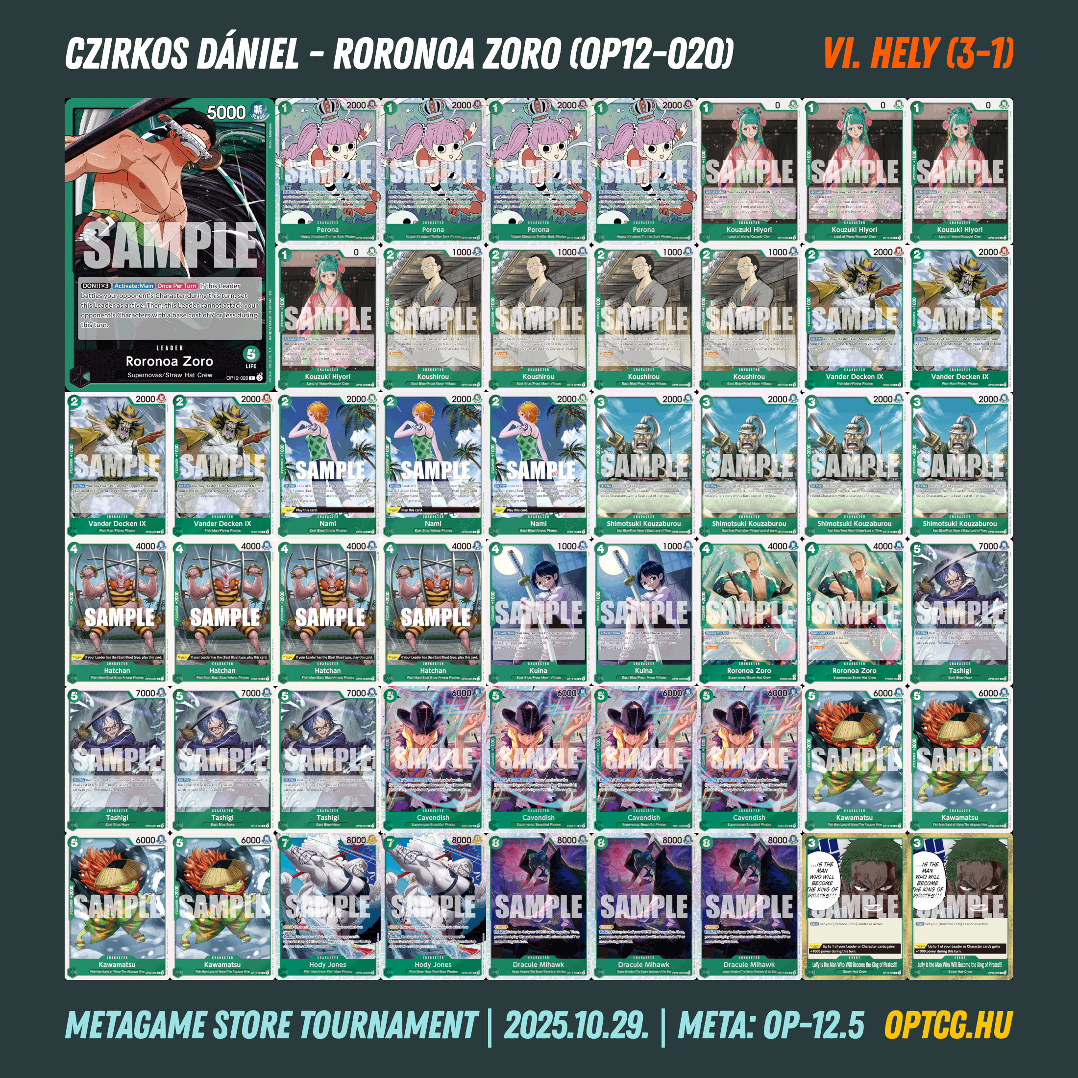 6. Czirkos Dániel (9) – Roronoa Zoro (OP12-020)