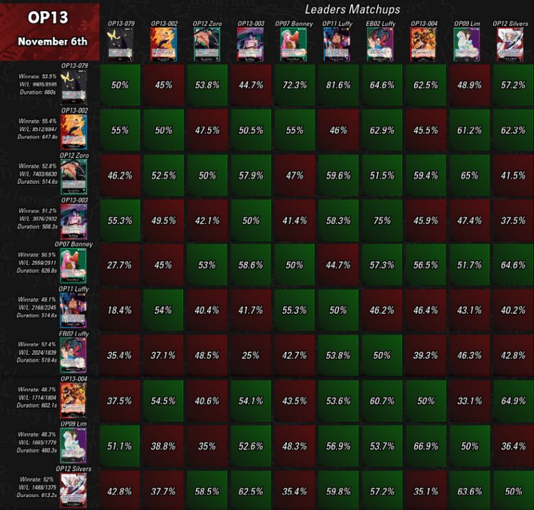 - Sabo (OP13-004) – 48,7% / 3 518 meccs