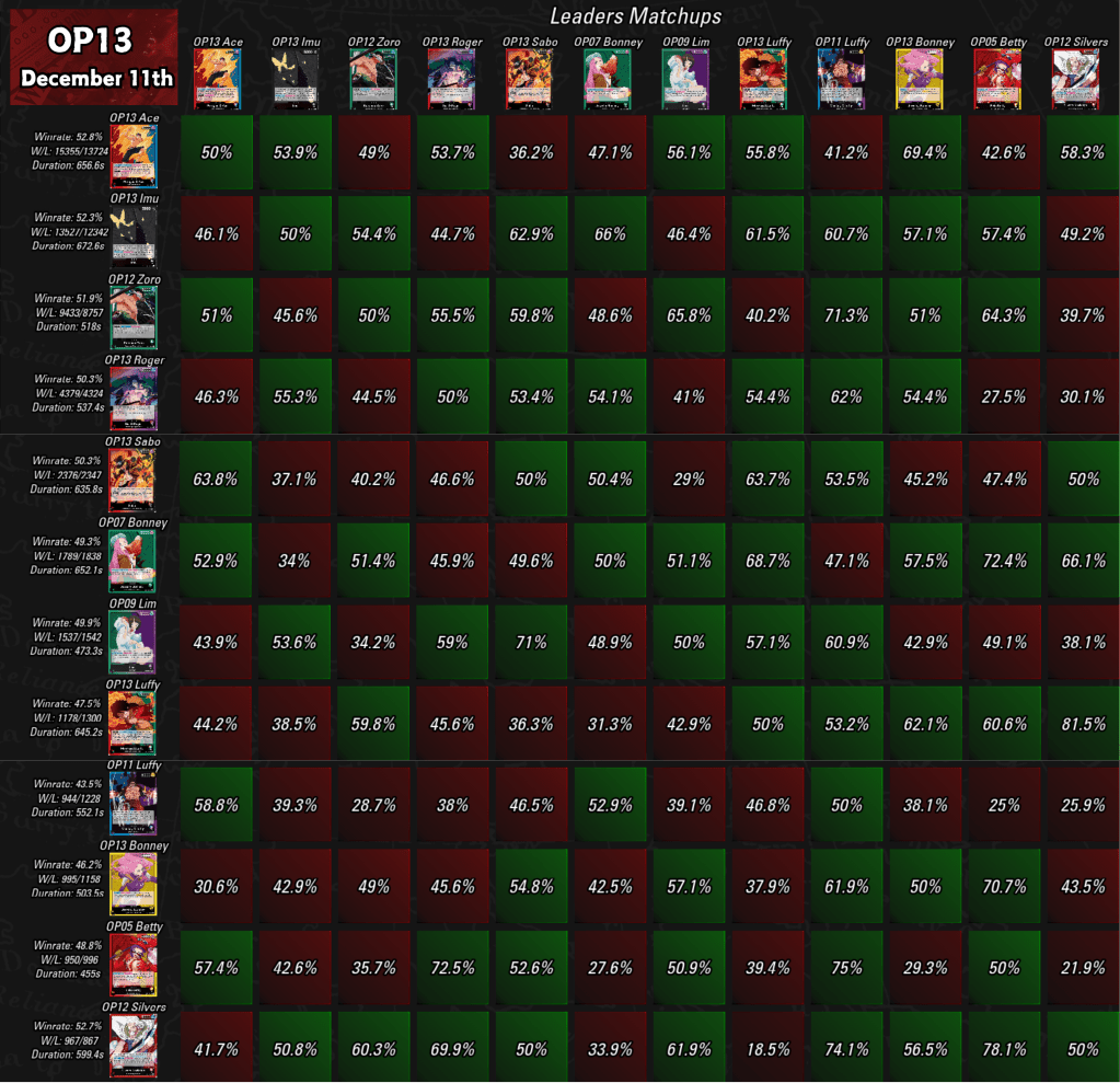 - Portgas.D.Ace (OP13-002) – 52,8% / 29 079 meccs