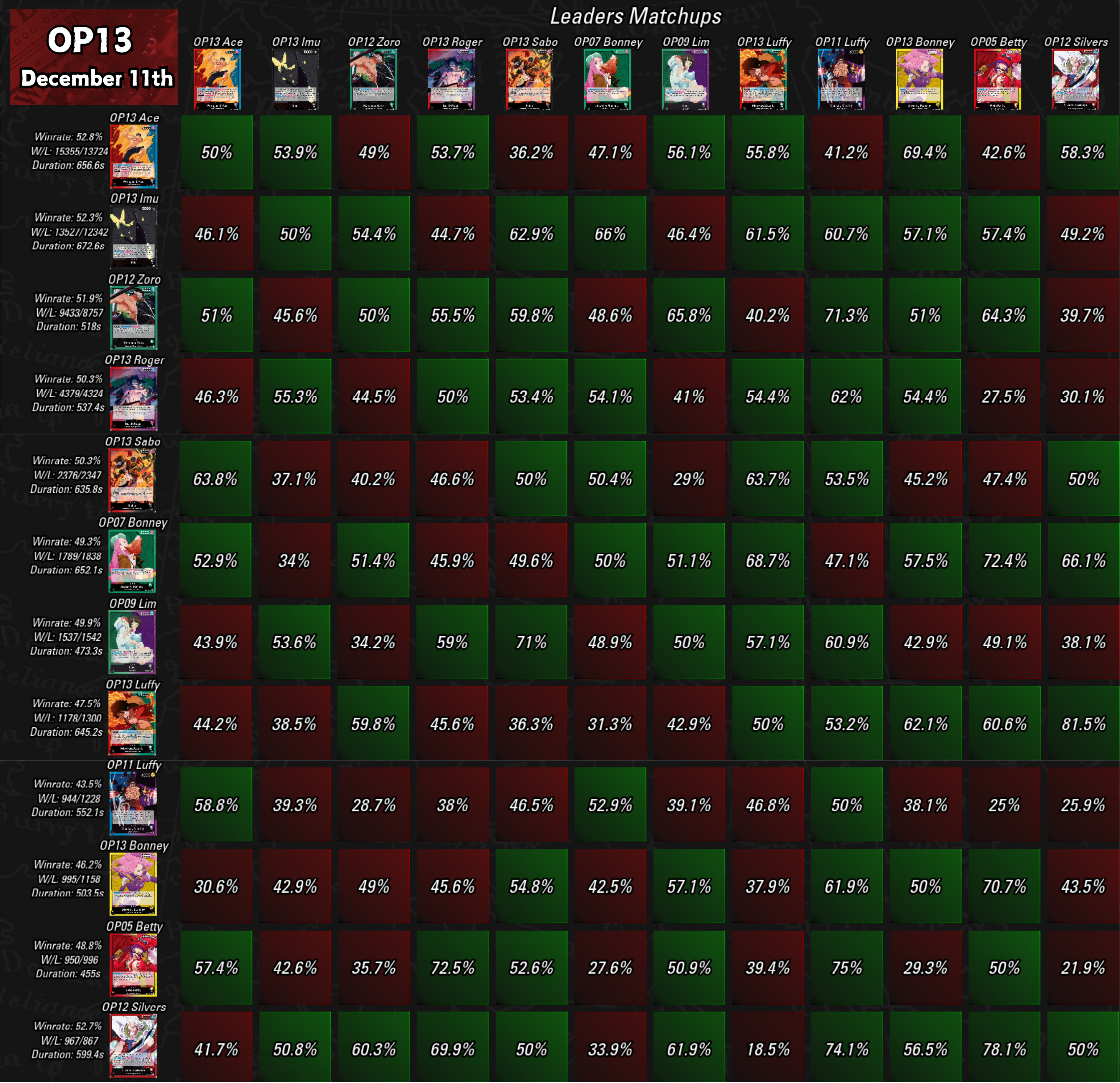 - Imu (OP13-079) – 52,3% / 25 869 meccs