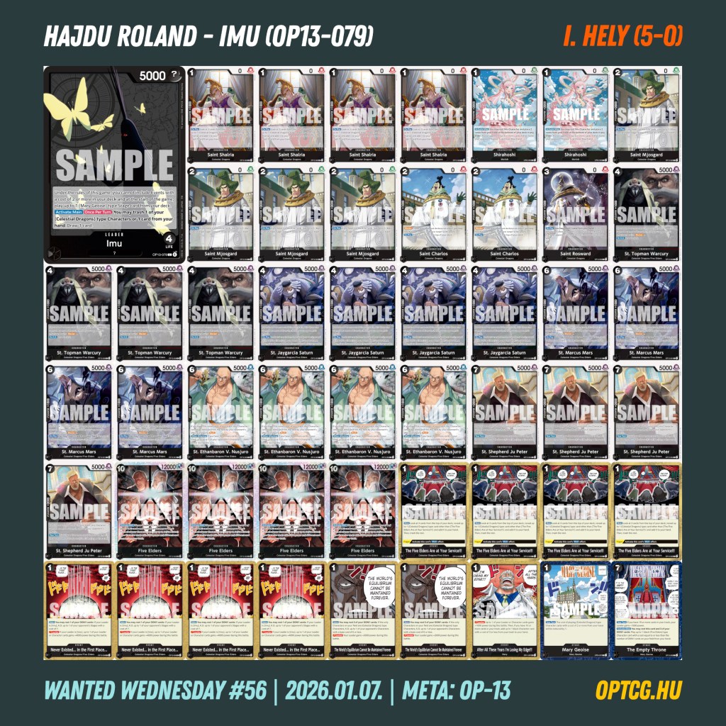 A két szezon közti átmeneti időszakot követően most szerdán hivatalosan is folytatódott a Wanted Wednesday versenysorozat a Meta Klubban, melynek 56. állomására összesen 28 játékos gyűlt össze, hogy elbúcsúztatta az OP-13-as metát. Ami egy kis extrát hozott az elmúlt hetekhez képest, hogy már lehetett használni a legújabb promó lapokat, köztük a leginkább várt lila Rogert.