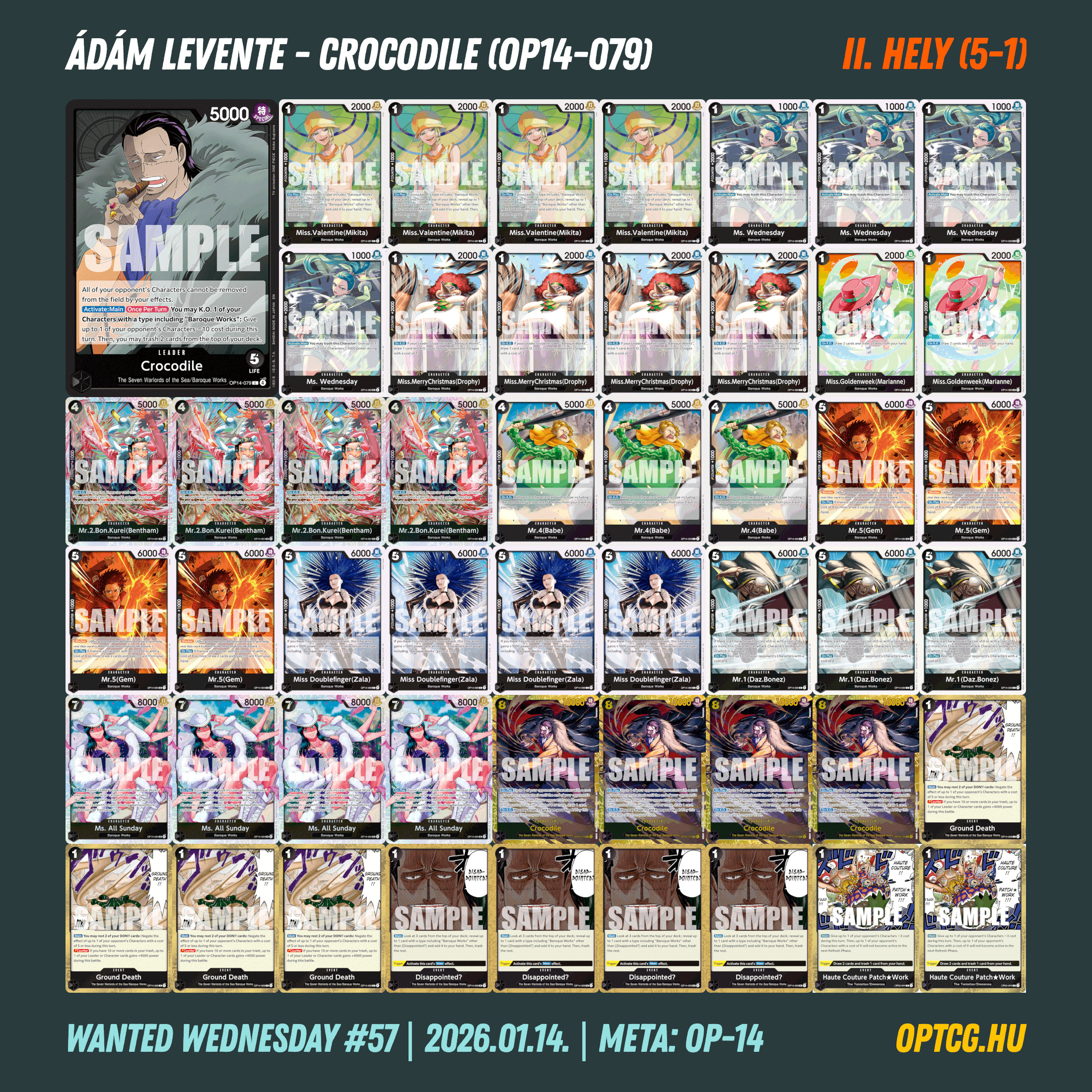 Kiemelt jelentőséggel bírt a január 14-i Wanted Wednesday verseny a Meta Klubban, ez volt ugyanis az első olyan hazai megmérettetés, ahol már az OP14-EB04 lapjait is lehetett használni. A meglehetősen egysíkú OP-13 környezetet követően pedig ez egyértelműen beindította a lelkesedést, a szerdai versenyek legnagyobb létszáma jött össze ugyanis, nem kevesebb mint 54 játékossal.
