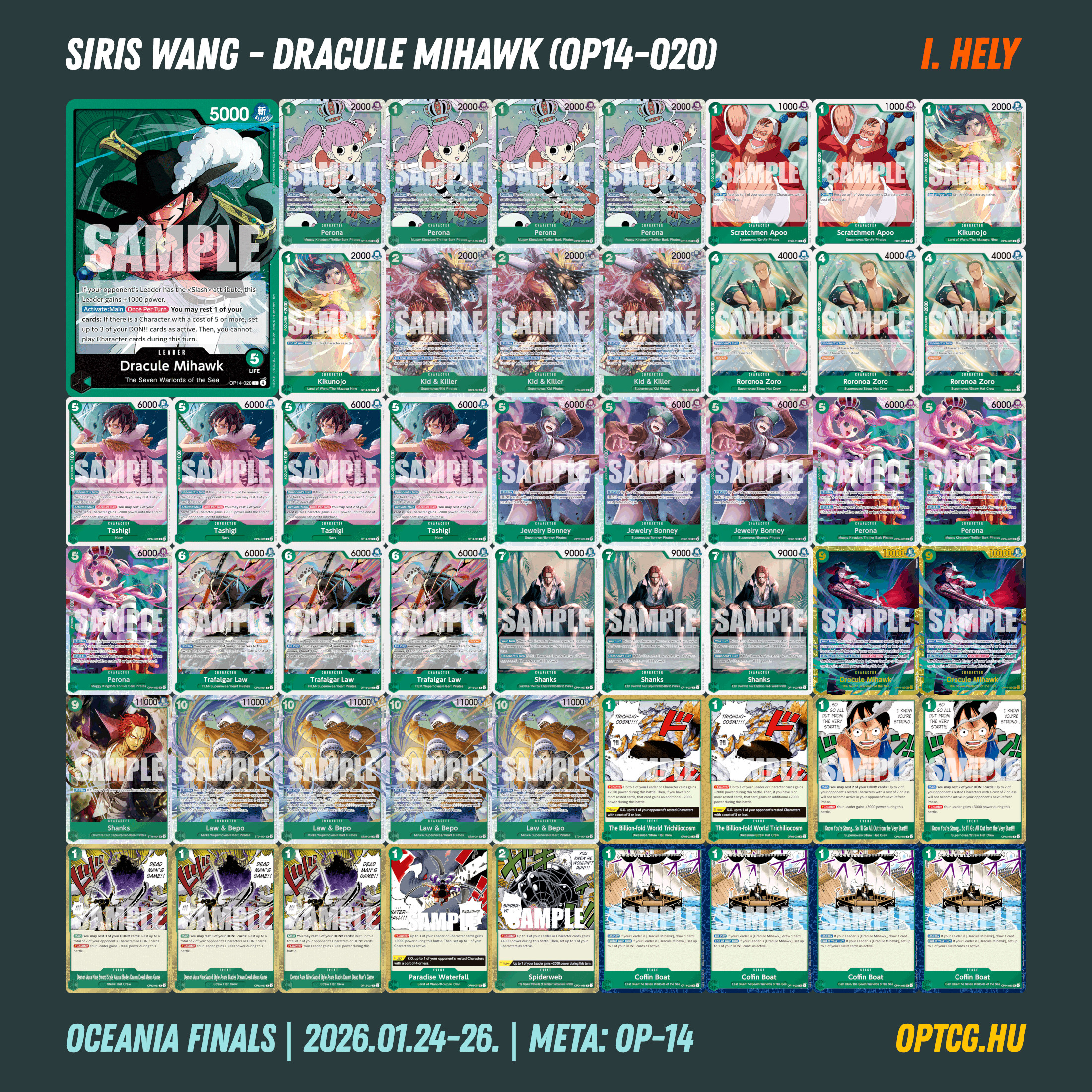 Előzetesen tehát úgy tűnt, hogy az Imukról szólhat a második nap, még úgy is, hogy az alapszakaszt Nathan Coddington nyerte Gecko Moriával. Végül azonban a második legjobban konvertáló Leader, a zöld Mihawk bizonyult kitartóbbnak: a döntőben két ilyen pakli csapott össze, a győzelmet pedig Siris Wang szerezte meg, így ő képviselheti majd a régiót a vb-n.