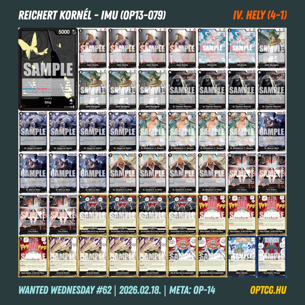 Igazán kiugró Leader most nem volt népszerűségben, de az elmúlt hetek legtöbbet használt deckjei – Imu, Mihawk, Boa, sárga Luffy – azért most is ott voltak szép számmal a mezőnyben.