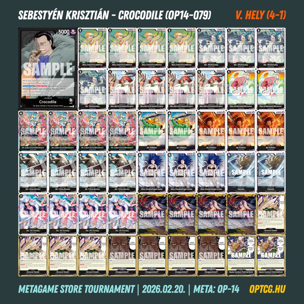 A szokásos Wanted Wednesday után pénteken is One Piece lokállal várta a Meta Klub a játékosokat, amire az EB-03 megjelenése miatt ezúttal kiemelkedően nagy volt az érdeklődés: egy híján negyven játékos szállt harcba a versenyen. Íme a mezőny: