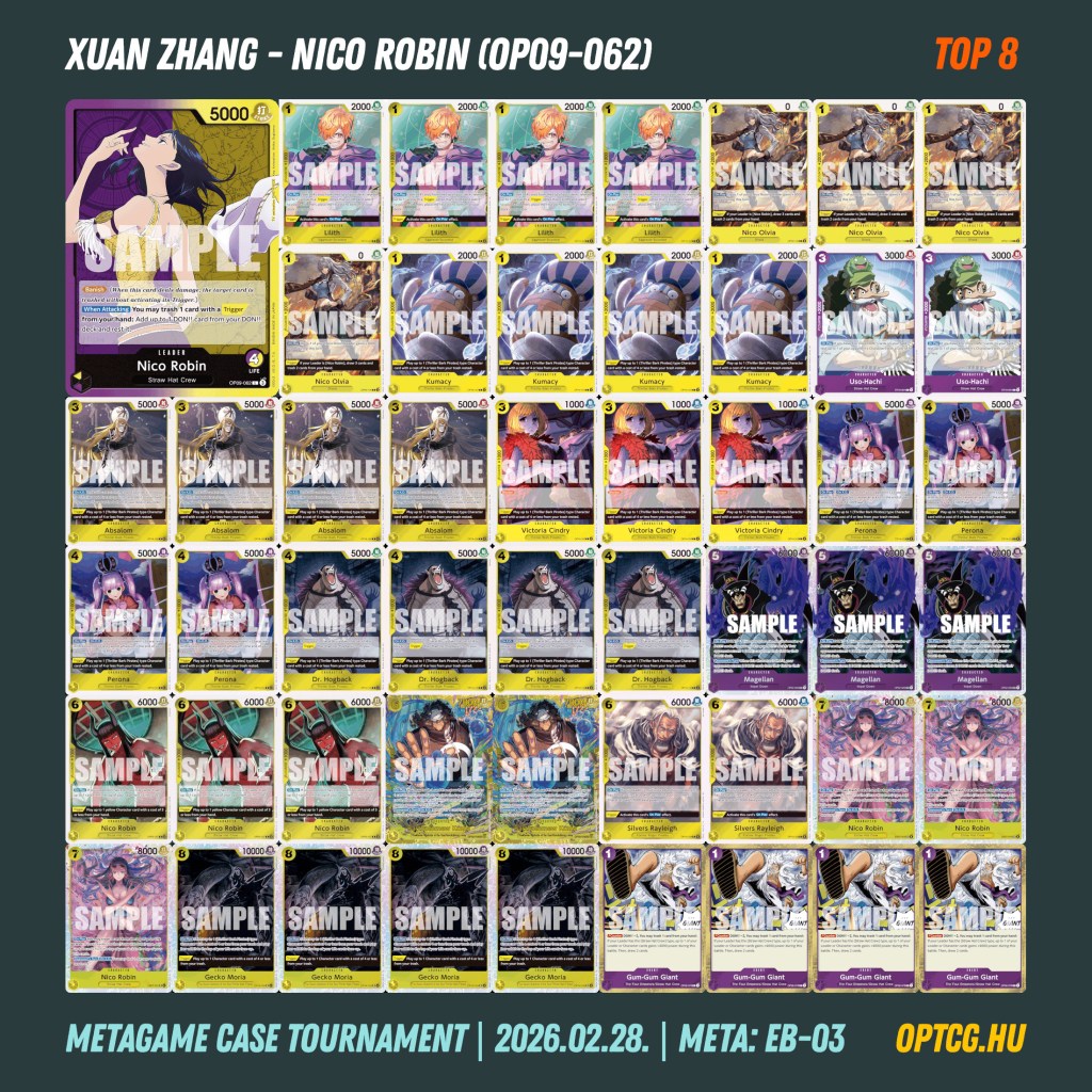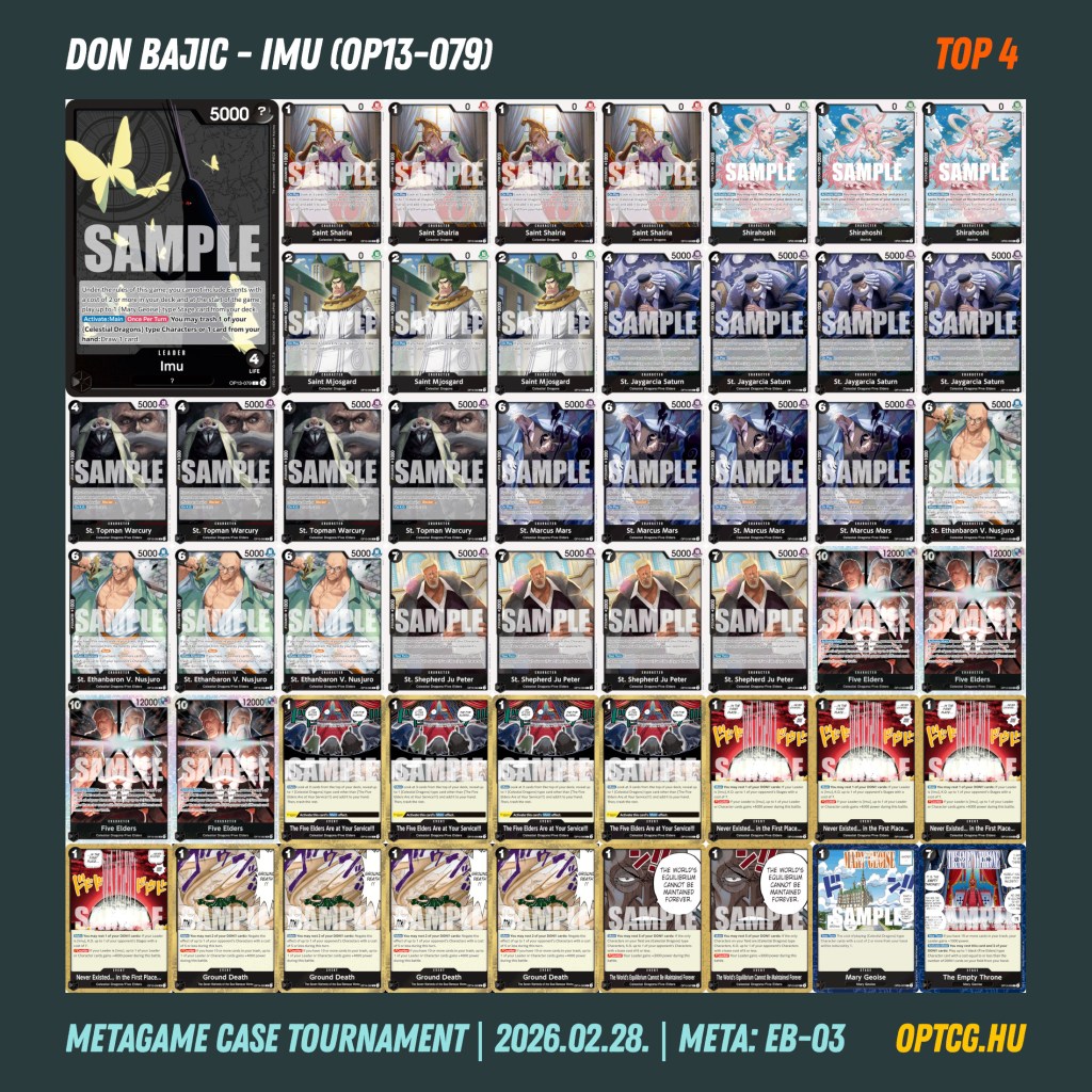 A top 8-ban természetesen már nagyon komoly díjak találtak gazdára, többen is display vagy afölötti mennyiséget vihettek haza az EB-03-ból. Gratulálunk mindenkinek – a top cutosok paklilistáit lent láthatjátok.