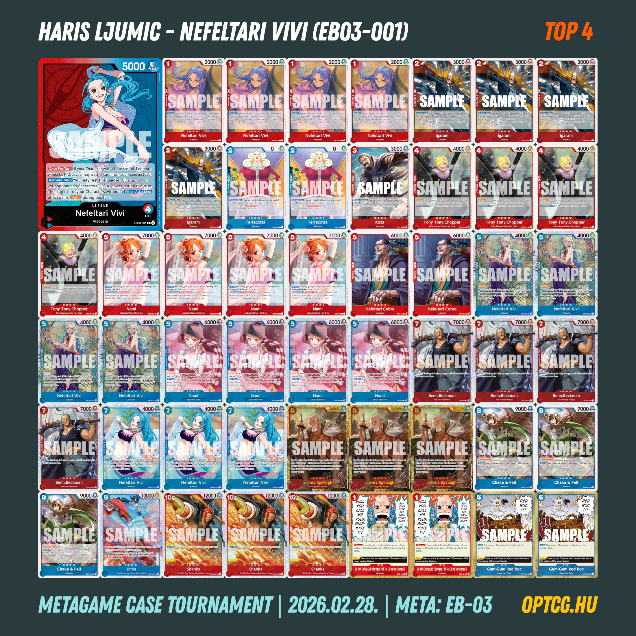 A számok jól mutatják, hogy mennyire kompetitív volt mezőny, a 7-7 Vivi és Imu ilyen tekintetben önmagáért beszél, de sok volt a komoly buffot kapó kék-sárga Namiból is, mint ahogy Ace-t és “varázsló” Sanjit is sokan hoztak. Akadtak persze így is outsider próbálkozások, összesen 17 különböző Leader alkotta a mezőnyt.