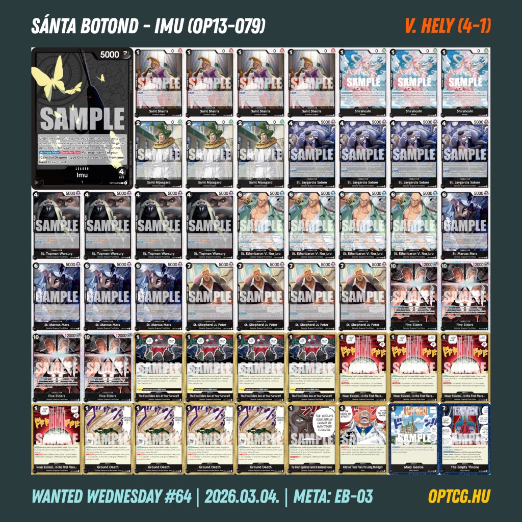 Ezen a héten is folytatódott az EB-03 környezet fejtegetése a Meta Klubban, ezúttal 36 játékos szállt harcba a szokásos Wanted Wednesdayen – lássuk a paklikat: